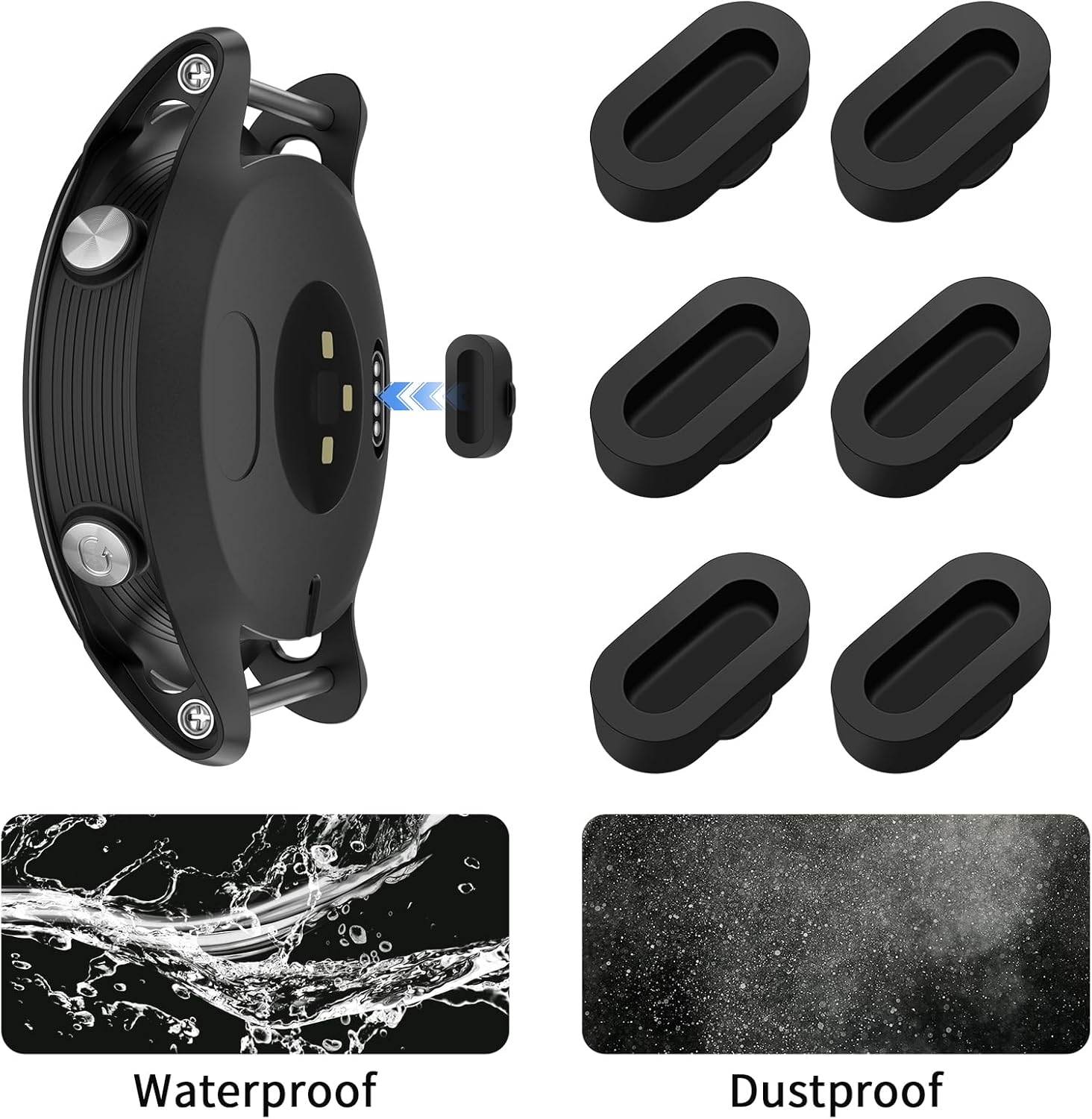 سدادة غبار من السيليكون من جارمين لفينيكس 8/7/7S/7X 5/5S/5X بلس/6S 6 6X، واقي منفذ شاحن مضاد للغبار متوافق مع جارمين فينو 2/فيفو اكتيف 3/4/انستنكت 2/فوررنر 45S/245/945 (6 اسود)