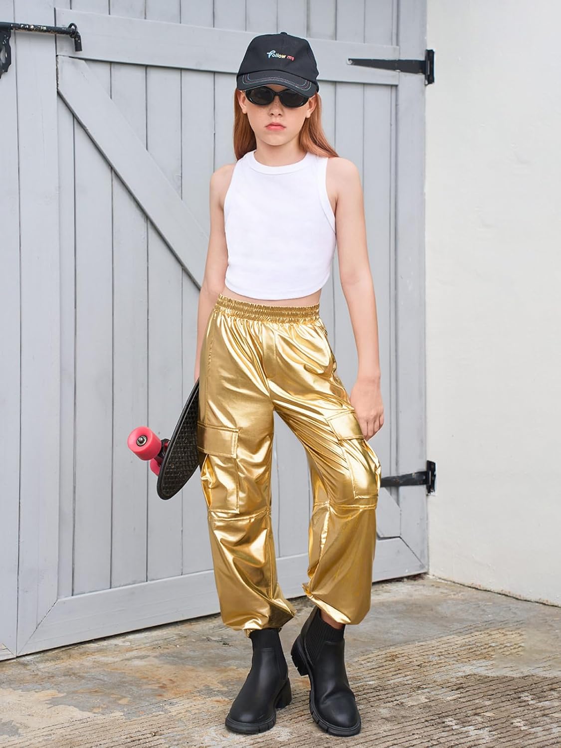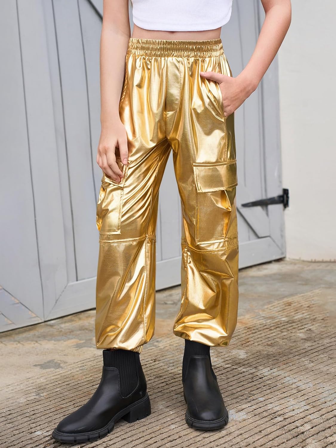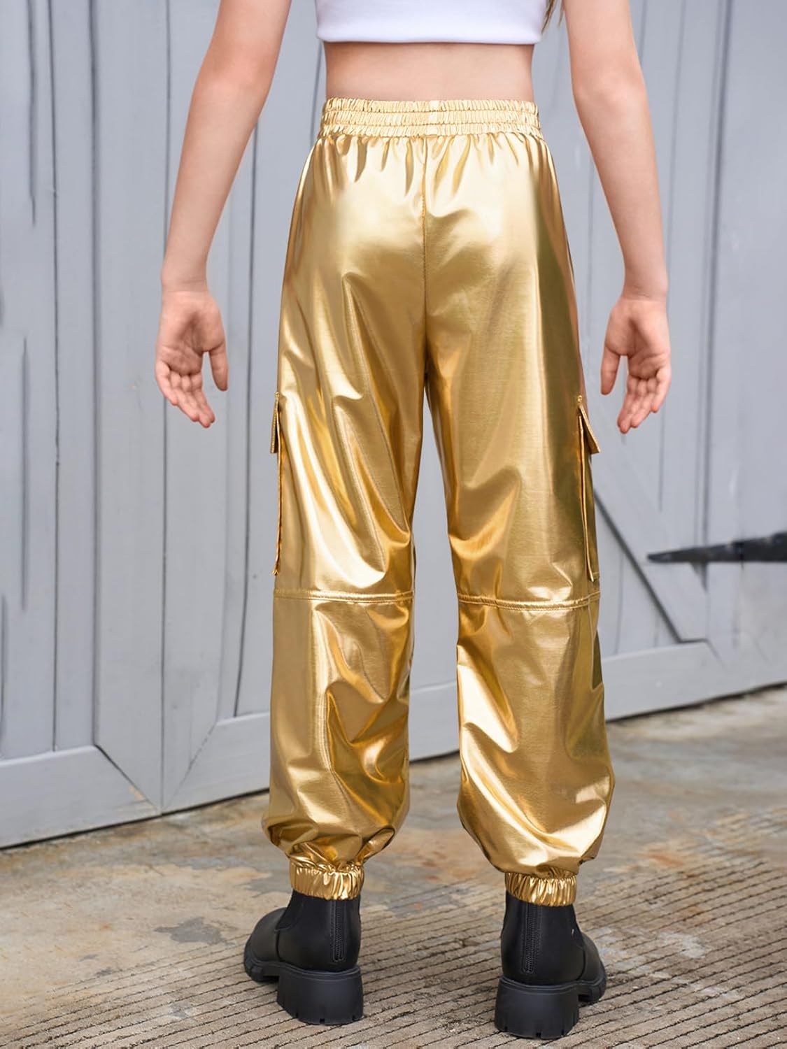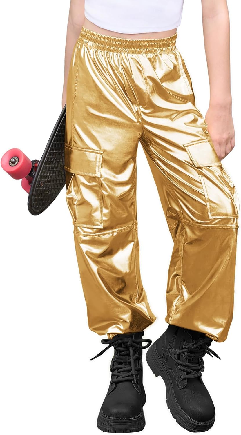 شراء سروال رياضي كارجو معدني للفتيات الصغيرات، ملابس رقص هيب هوب لامعة بخصر مرتفع لعمر 5-14 سنة اون لاين من امازون او نون وحراج سروال رياضي كارجو معدني للفتيات الصغيرات، ملابس رقص هيب هوب لامعة بخصر مرتفع لعمر 5-14 سنة