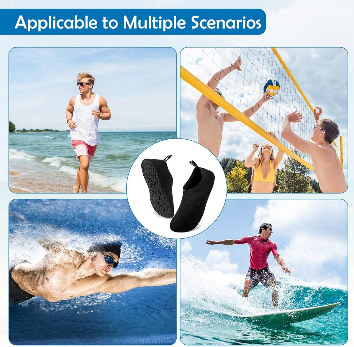 سكاي-تاتش حذاء مائي للنساء والرجال، حذاء للشاطئ في الهواء الطلق والسباحة والجوارب المائية، حذاء سريع الجفاف للغطس وركوب الامواج واليوغا وحمام السباحة، حذاء مائي مقاس 34-45، اسود