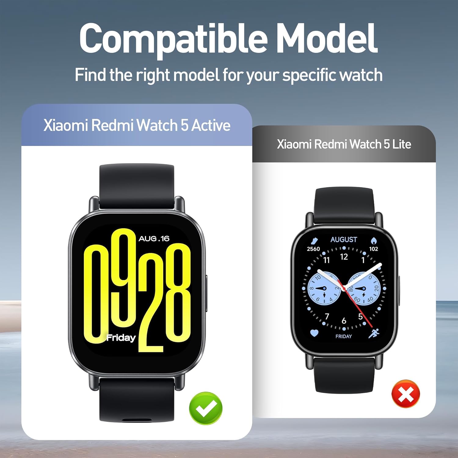 【الموديلات المتوافقة】مصمم خصيصًا لساعة ريدمي ووتش 5 اكتيف. جراب صلب عالي الجودة من البولي كربونات مع واقي شاشة مدمج يسمح بالتركيب السريع والسهل، مناسب تمامًا لساعتك. (ملاحظة: غير متوافق مع ساعة ريدمي ووتش 5 لايت الذكية. ) يرجى التأكد من طراز ساعتك قبل الشراء.