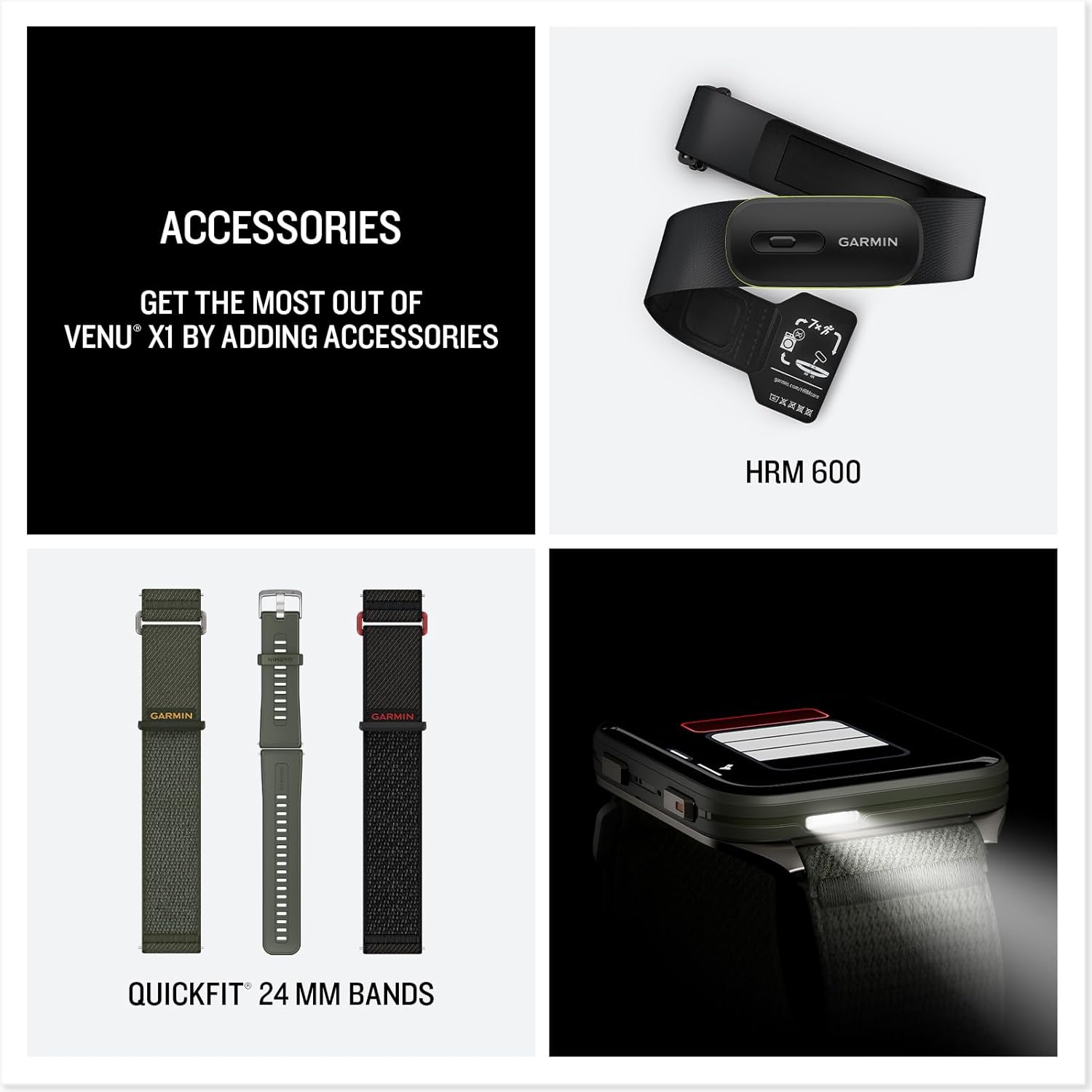 سلسلة ملحقات متوافقة مع جارمين فينو X1، سريعة الفك، 0.9 انش (24 ملم)، سوار سيليكون، سوار نايلون، غشاء واقي LCD