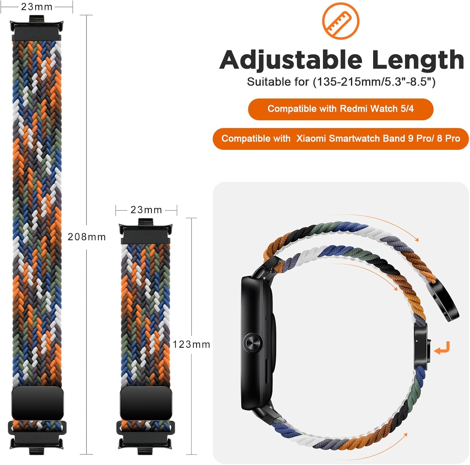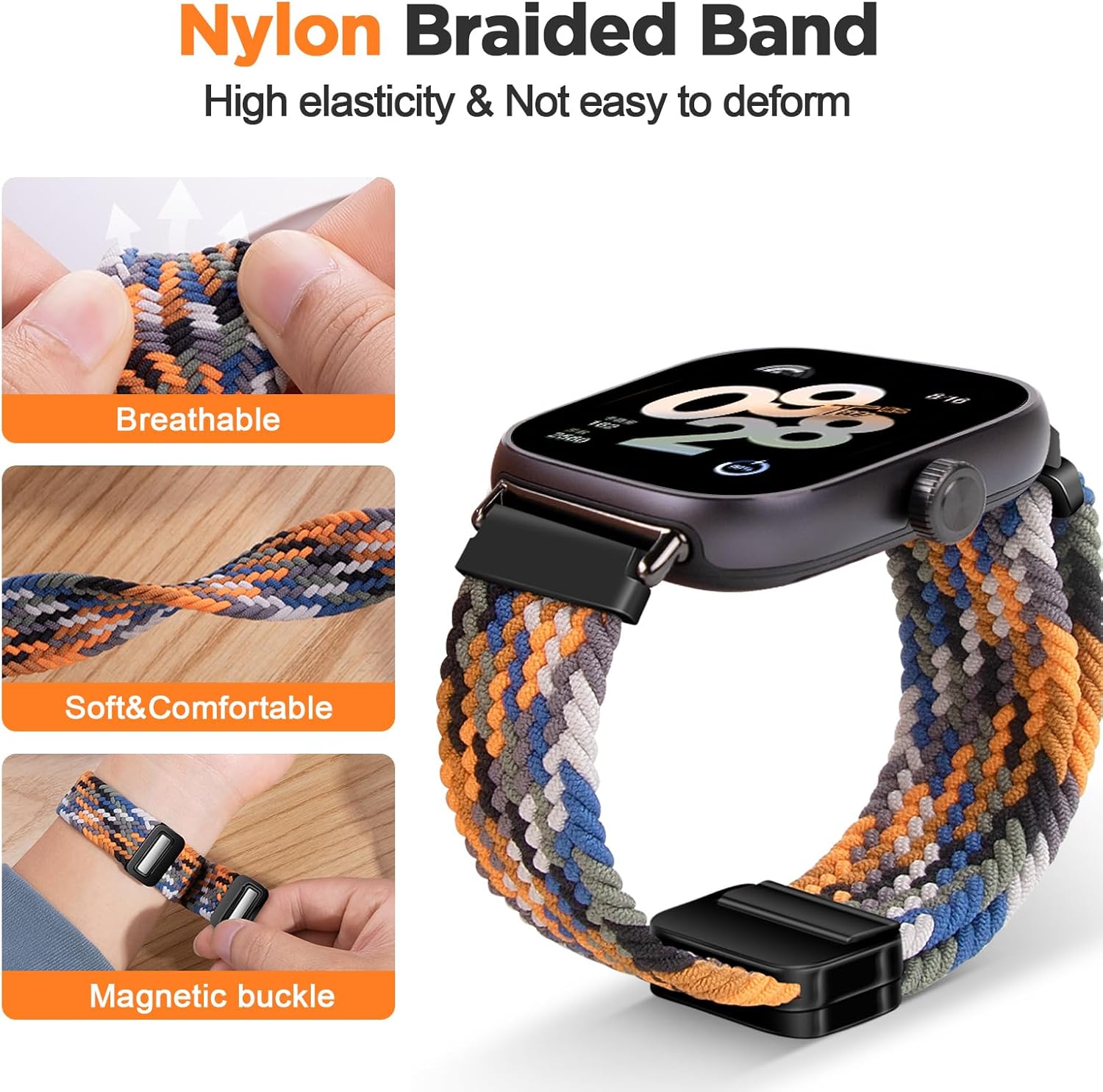 سوار بديل مضفر مرن وقابل للتعديل متوافق مع ساعة ريدمي ووتش 5، سوار معصم رياضي من النايلون متوافق مع ساعة شاومي الذكية باند 9 برو/ 8 برو