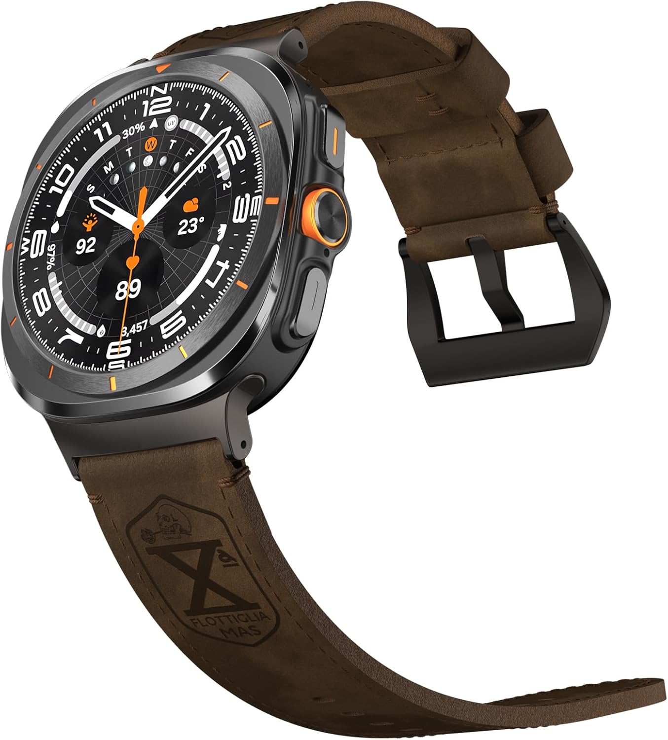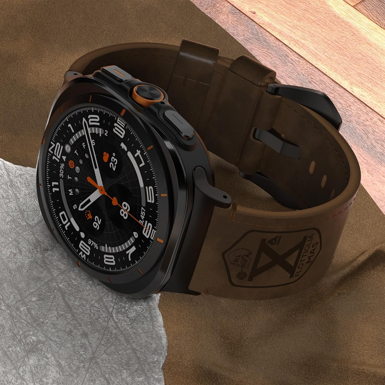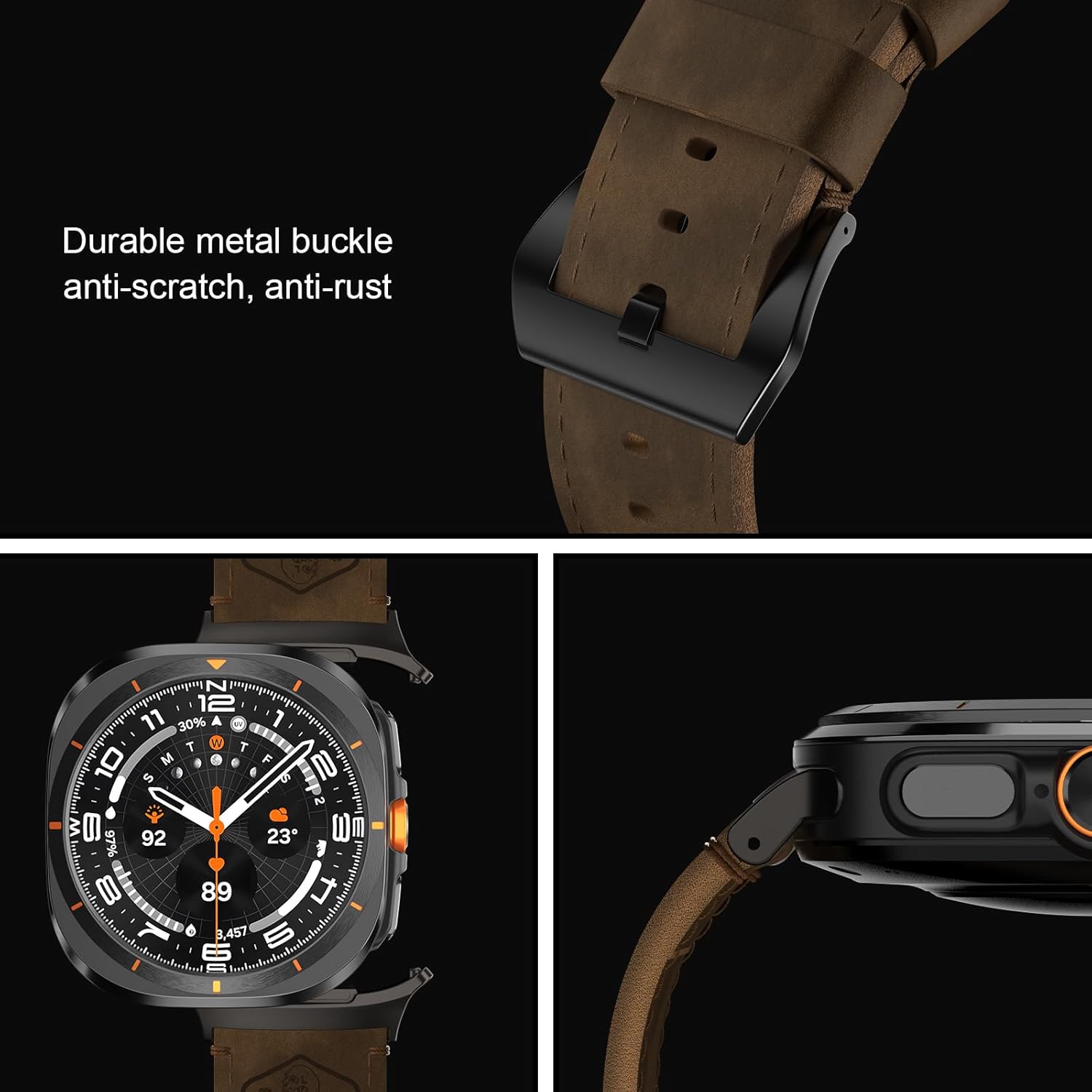 سوار جلدي فينتاج من فسانت متوافق مع ساعة سامسونج جالكسي الترا 47 ملم (2025/2024)، سوار جلد كريزي هورس بعرض 24 ملم لساعة جالكسي الترا للرجال والنساء، بني رترو