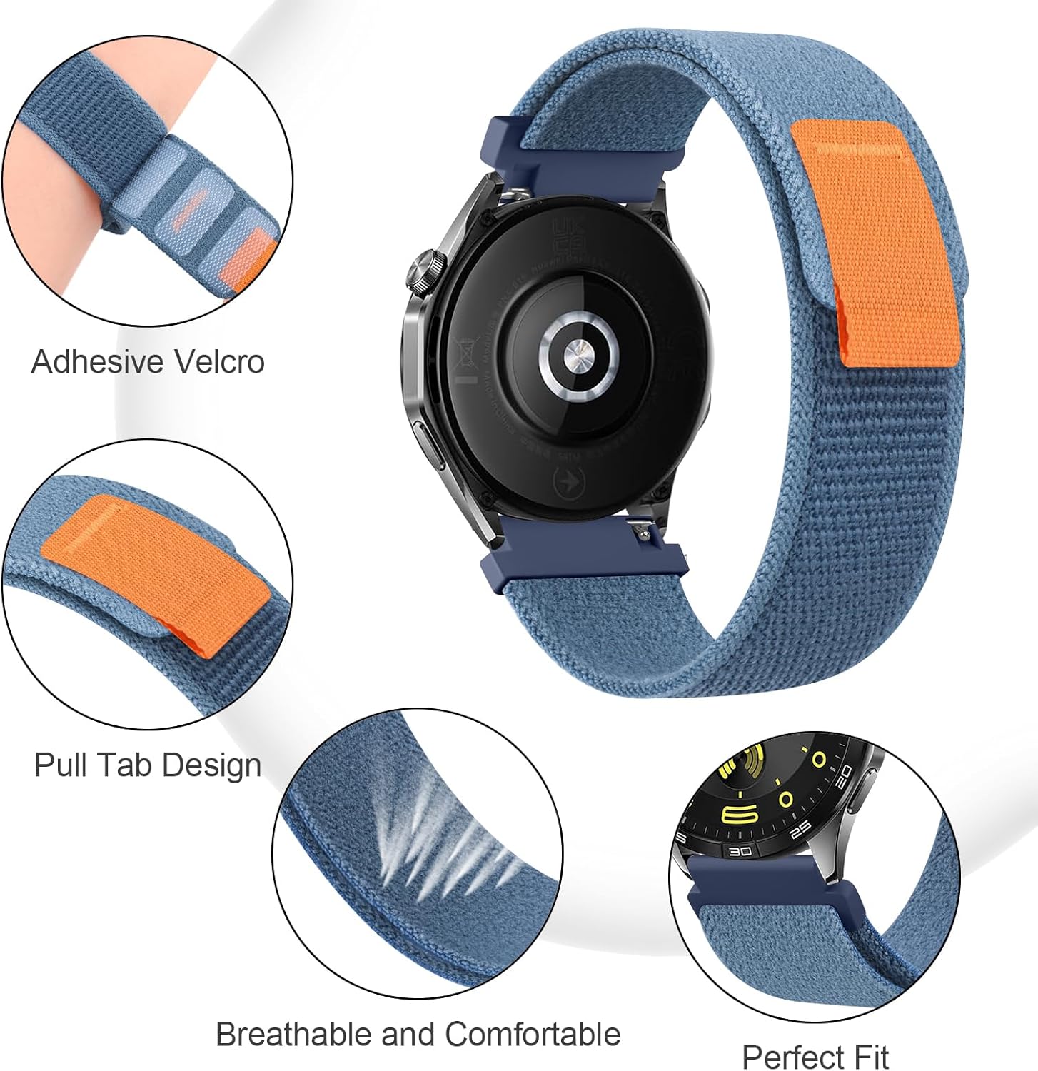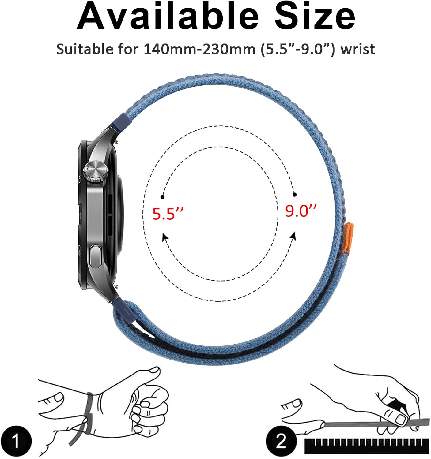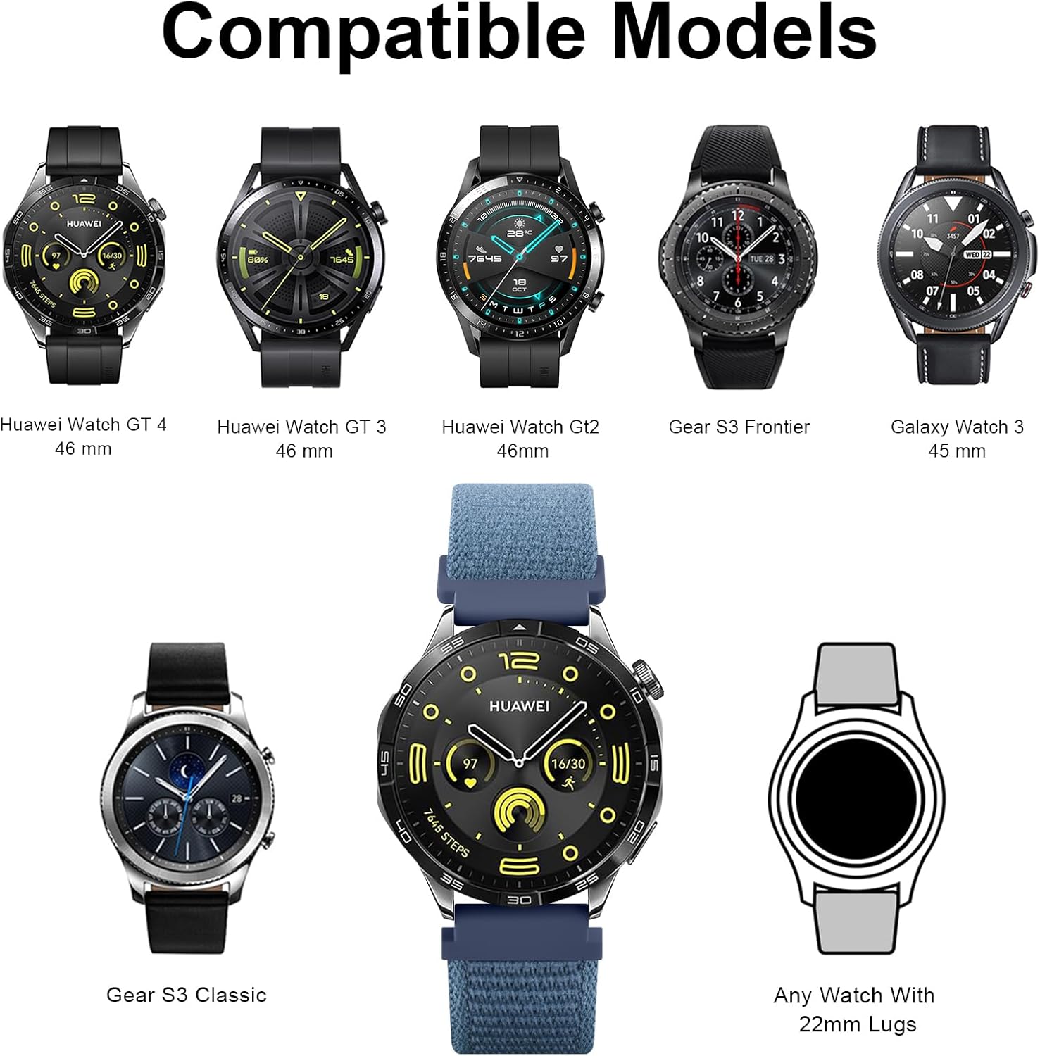 سوار حلقي نايلون لساعة هواوي GT 4/3/2/2 برو 46 ملم، سامسونج جالاكسي ووتش 3 45 ملم – 22 ملم سوار سريع الفك للرجال والنساء