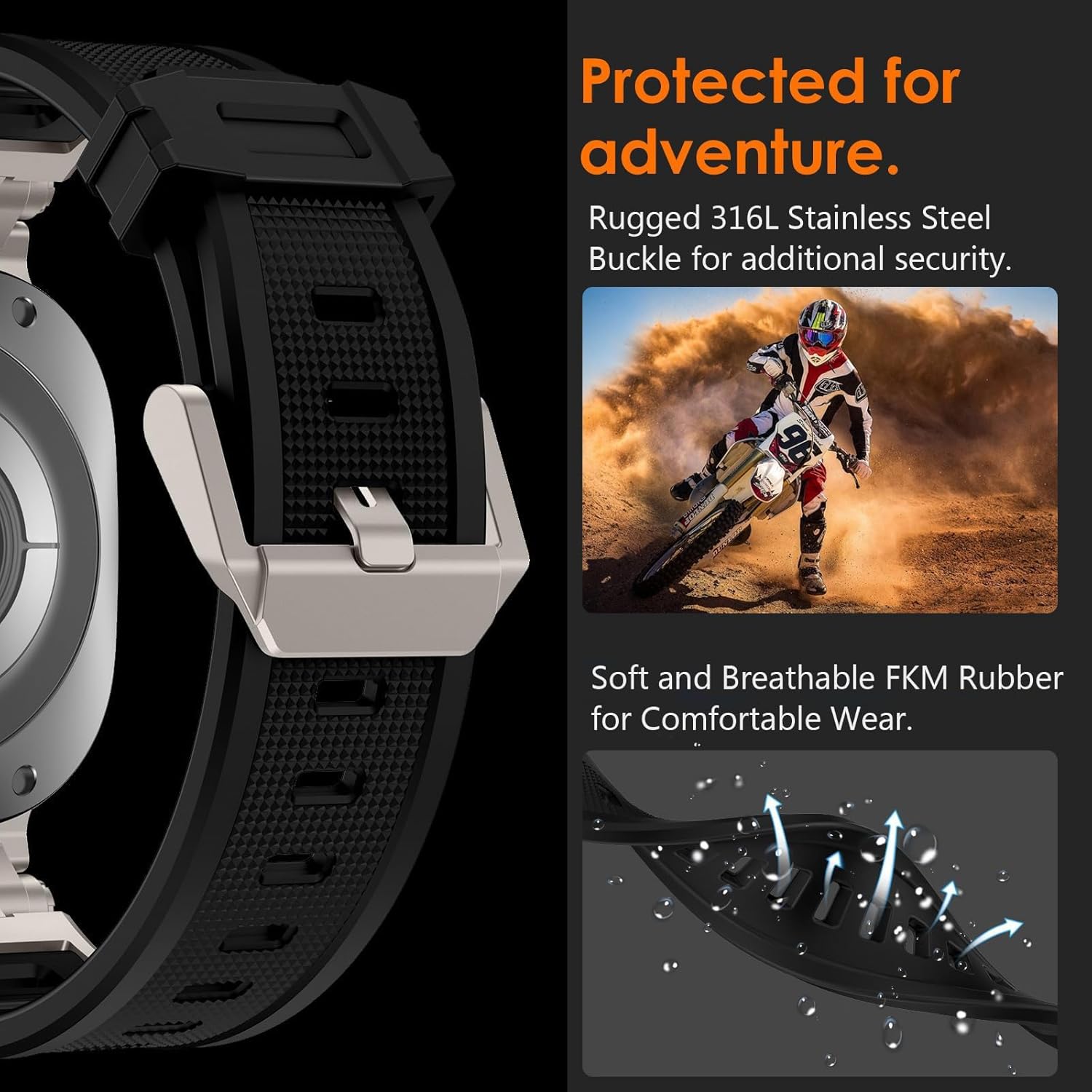 سوار رياضي متوافق مع ساعة جالكسي الترا 47 ملم للرجال، سوار رياضي بتصميم درع متين، سوار مطاطي من السيليكون مع موصل معدني من الستانلس ستيل، سوار عسكري متين لساعة جالكسي 7 الترا