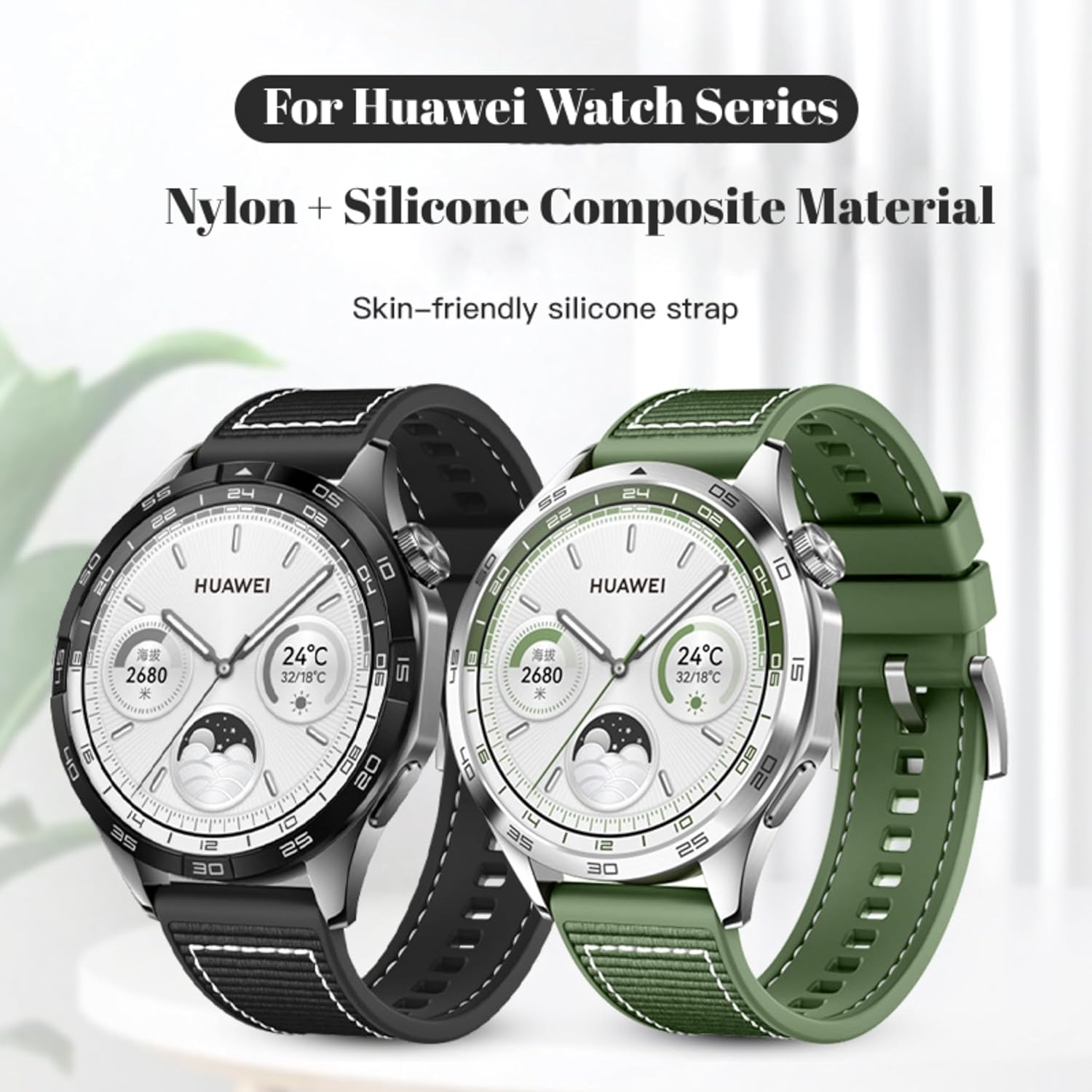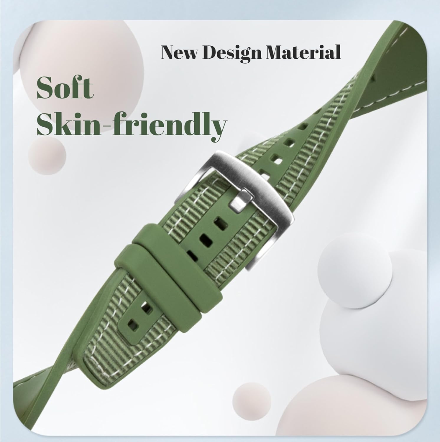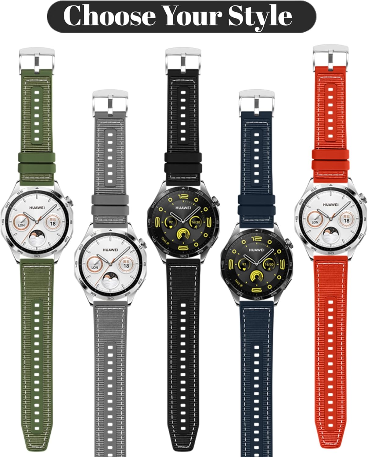سوار ساعة بديل من نيسلين متوافق مع ساعة هواوي GT5/GT5 برو 46 ملم 2024/GT4/GT3/GT3 برو/GT2/GT2e/GT رانر/هواوي ووتش 4/4 برو ستاب/22 ملم، سوار بديل من مادة السيليكون والنايلون (اخضر)