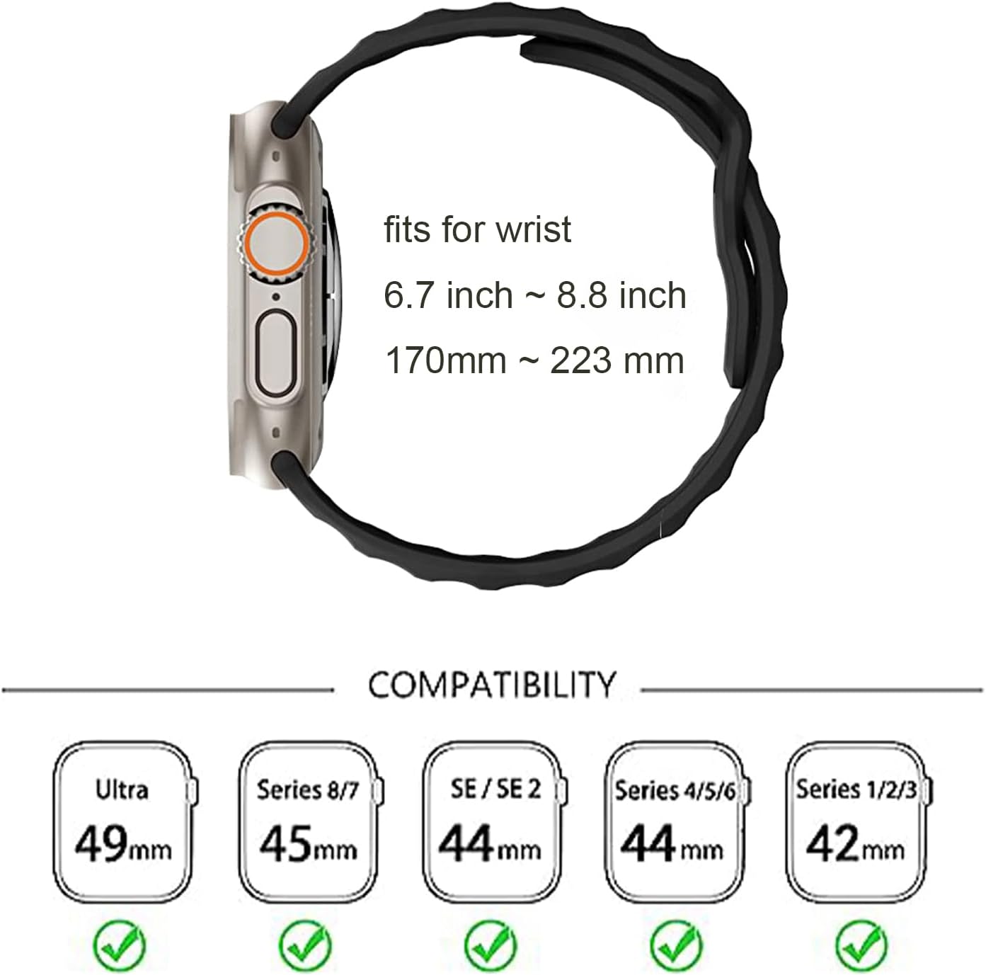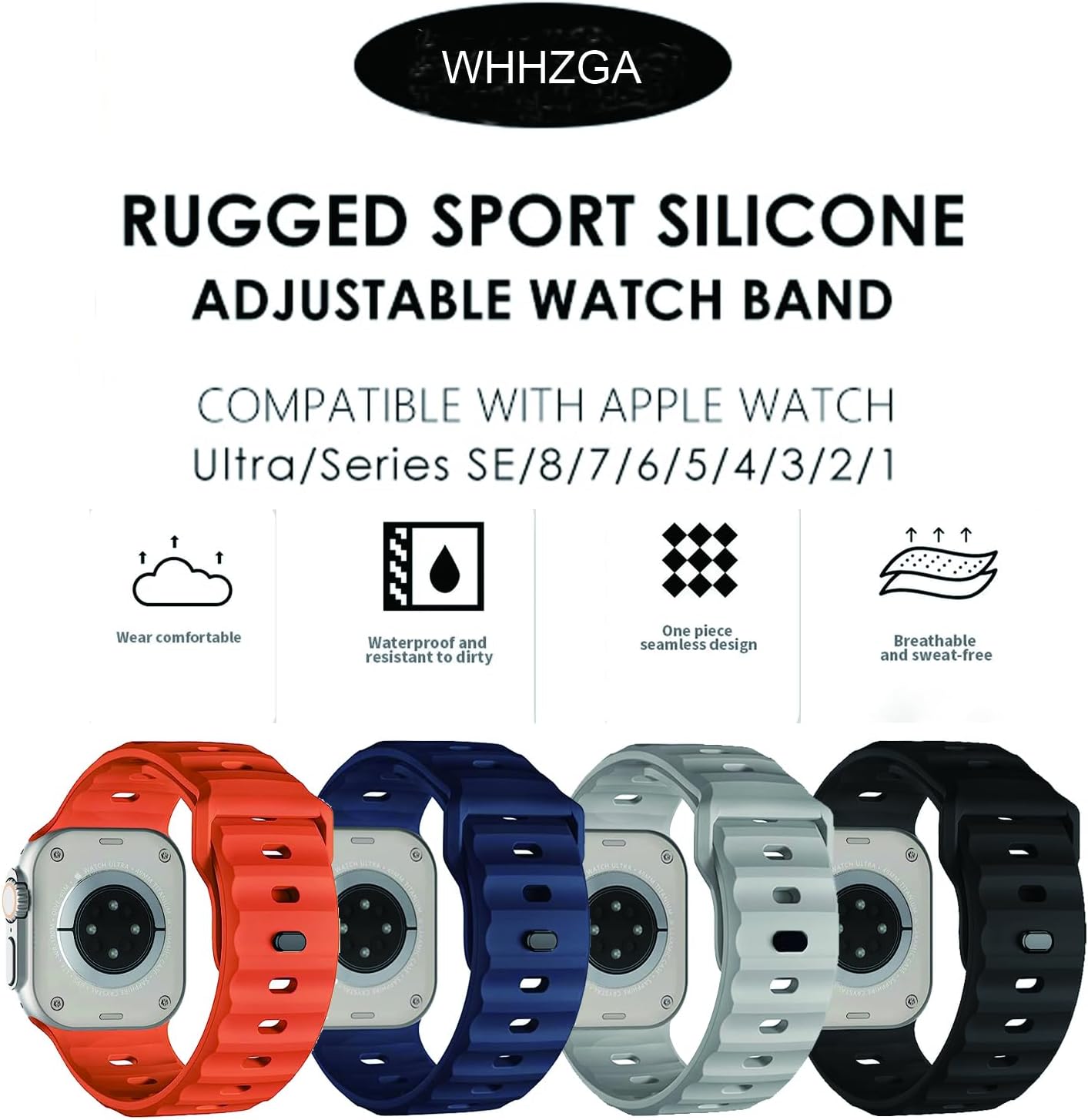 سوار ساعة رياضي من دبليو اتش اتش زد جي ايه متوافق مع سوار ساعة الترا 49 ملم 45 ملم 44 ملم 42 ملم للرجال، اساور معصم بديلة من السيليكون الناعم المقاوم للماء لسلسلة اي ووتش 8 7 6 5 اس اي الترا. تم تخصيص سوار الساعة لإظهار شعور قوي بالقوة، مما يبرز الهدوء والموثوقية، أساور الساعة للرجال والنساء لإظهار الإحساس بالحيوية.