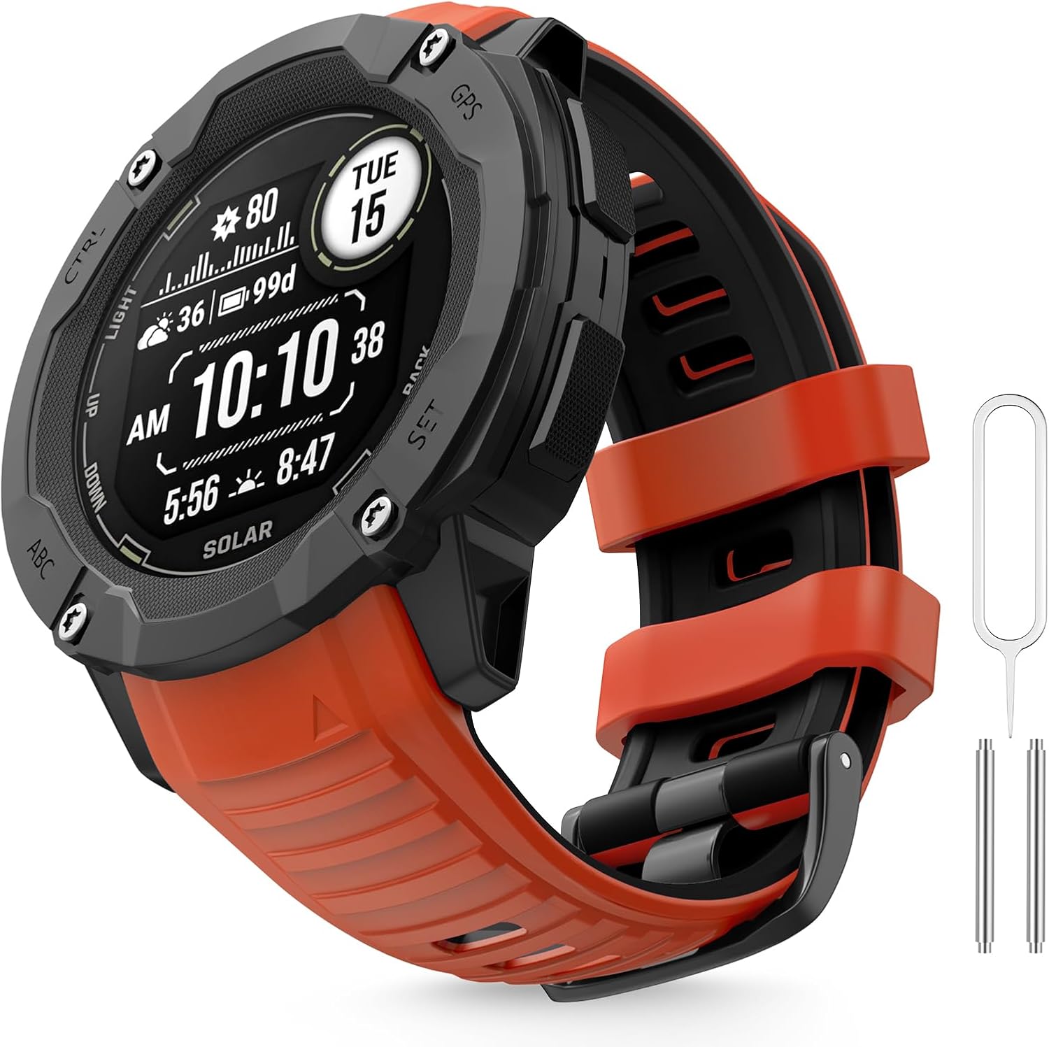 سوار ساعة لساعة جارمين انستينكت 2X، سولار، سوار بديل من السيليكون الناعم التكتيكي مع ادوات محول