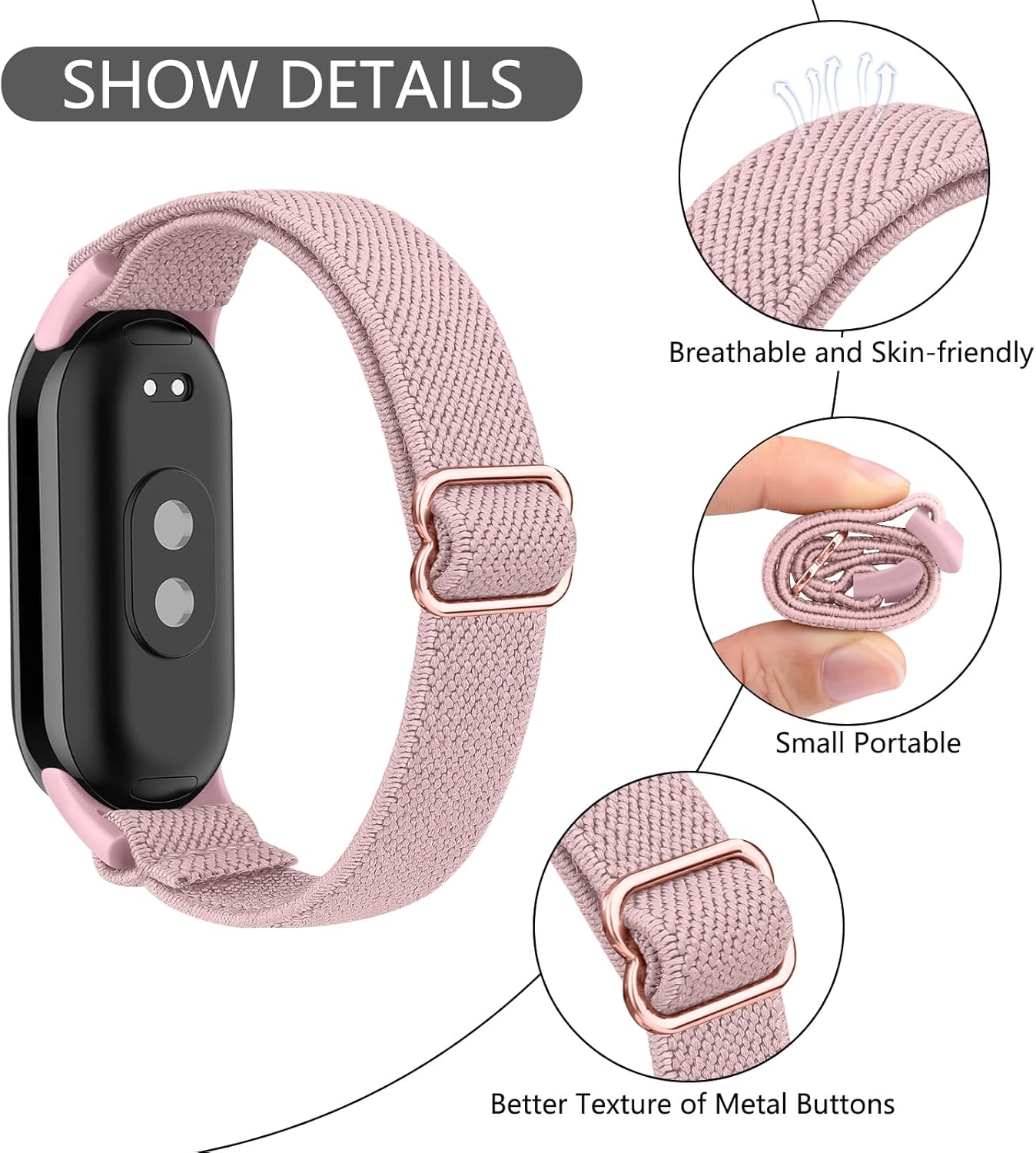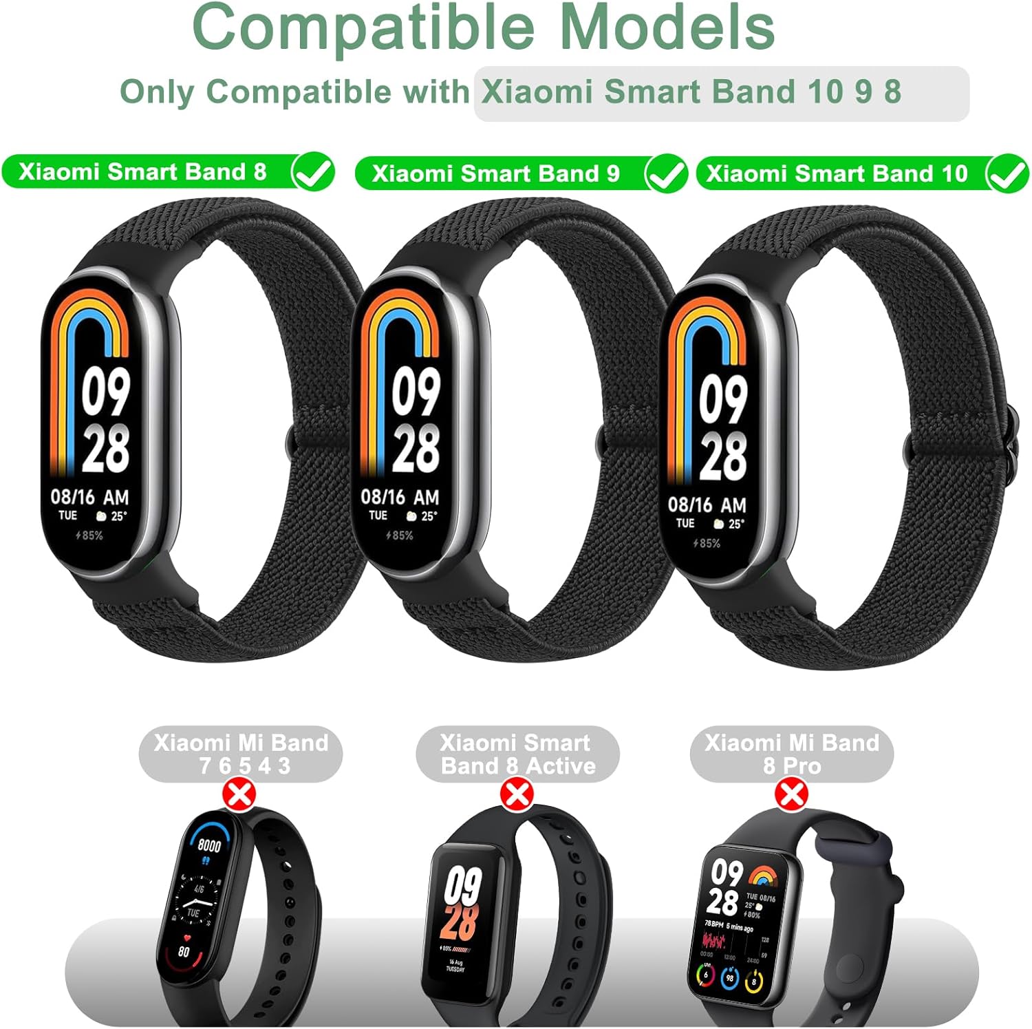 سوار مطاطي لساعة شاومي مي باند 8/9، سوار نايلون قابل للتمدد والتعديل وجيد التهوية لسوار شاومي مي الذكي 8/9 للرجال والنساء