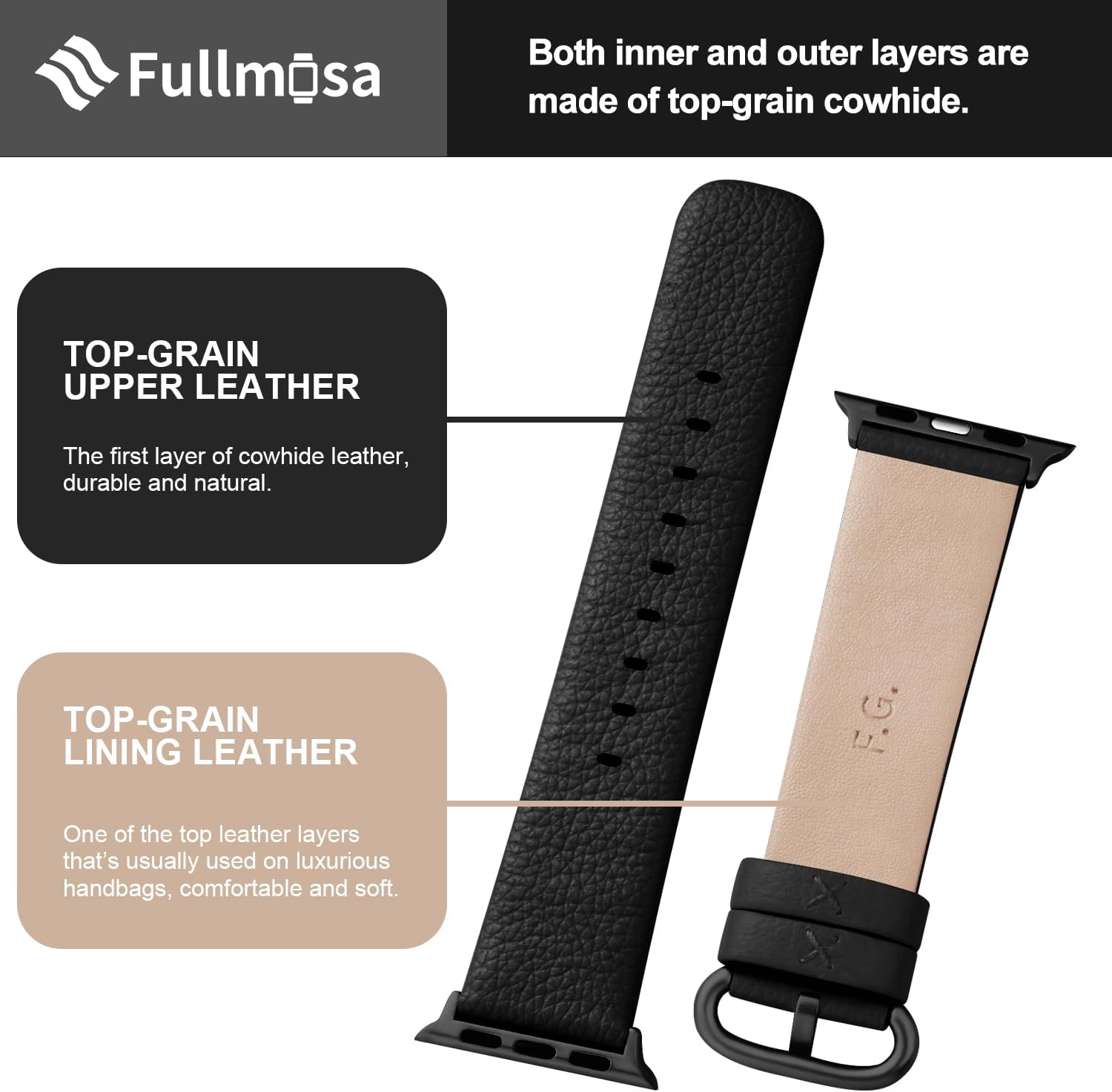 سوار من الجلد الطبيعي من فولموسا متوافق مع ساعة ابل بمشبك من الستانلس ستيل لساعات ابل سيريز 4 وسيريز 3 وسيريز 3 وسيريز 1، قياس 44 ملم و42 ملم و40 ملم و38 ملم، 15 لون