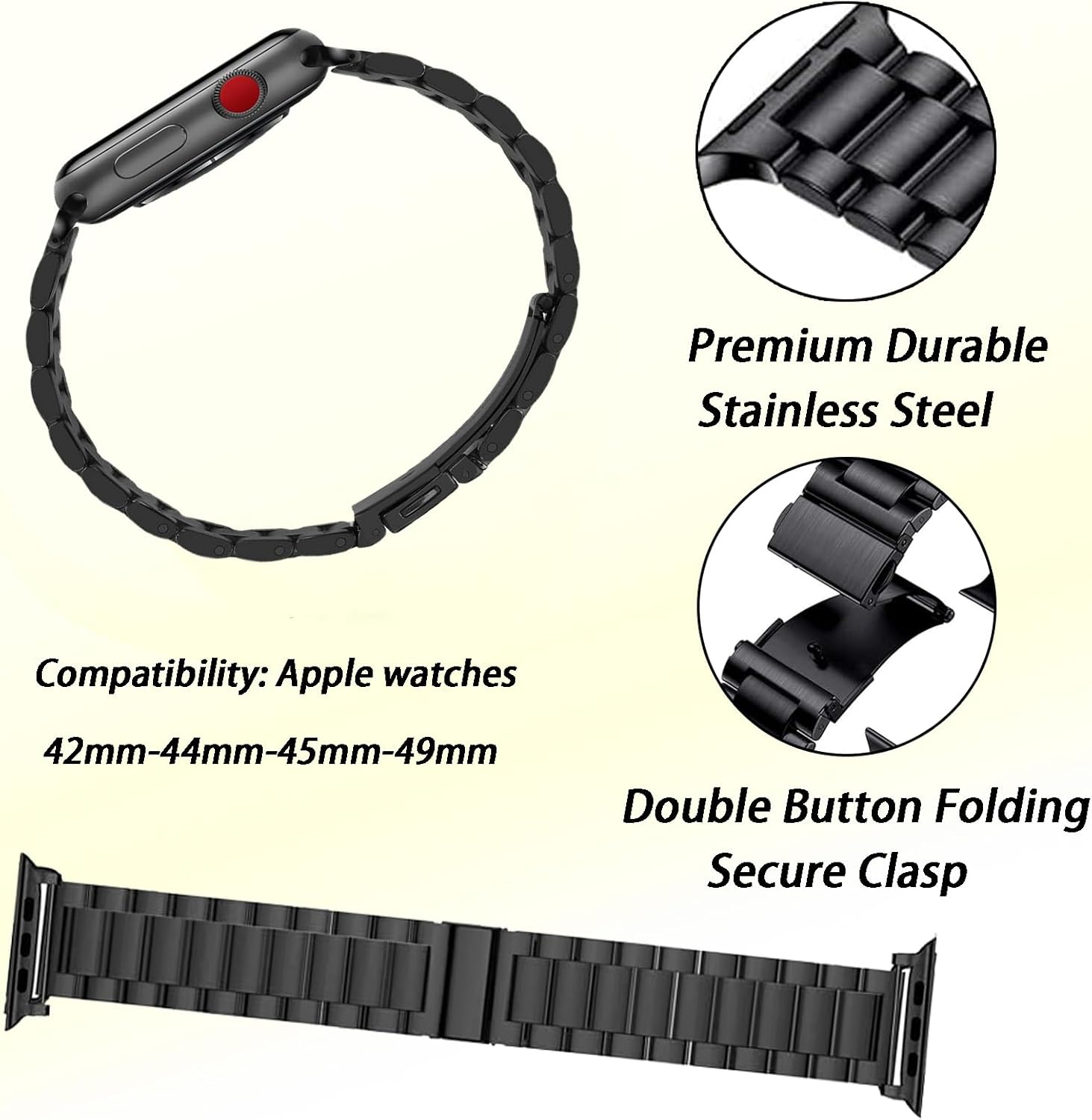 كن أول من يقيم “سوار من الستانلس ستيل من دوماما – متوافق مع اي ووتش 42/44/45/49 ملم – سوار بديل معدني ممتاز – تصميم انيق ومتين – سهل التركيب – الساعة غير متضمنة”