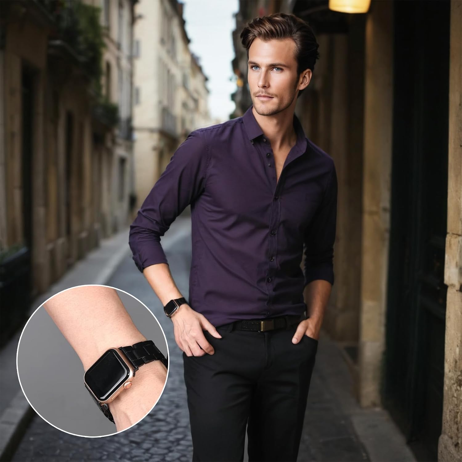 سوار من الستانلس ستيل من دوماما – متوافق مع اي ووتش 42/44/45/49 ملم – سوار بديل معدني ممتاز – تصميم انيق ومتين – سهل التركيب – الساعة غير متضمنة