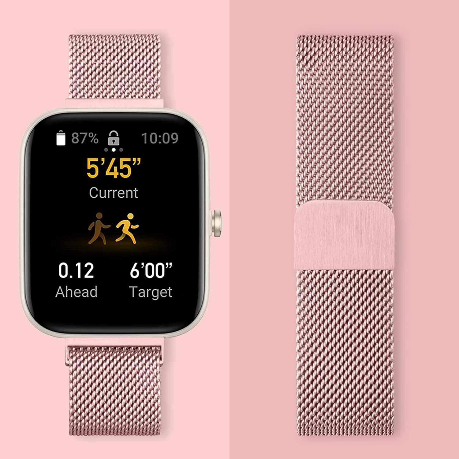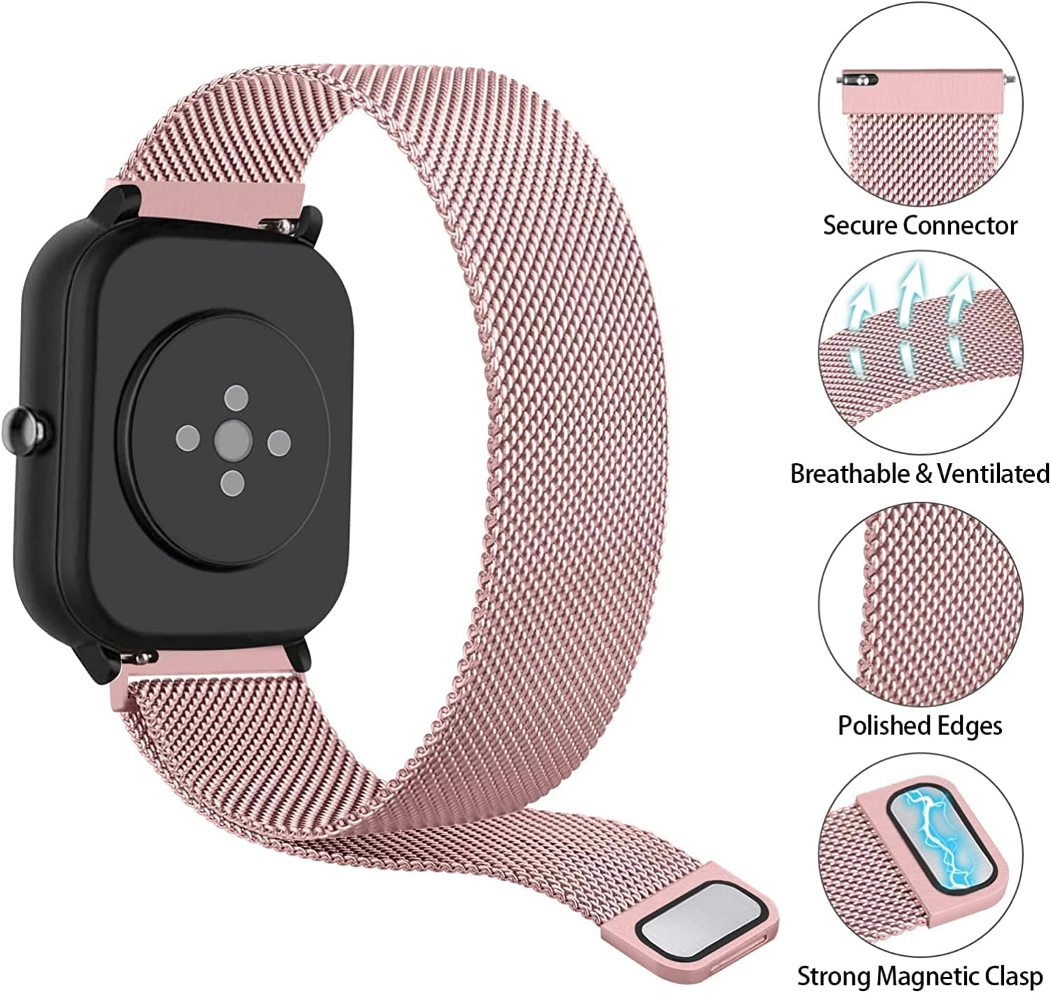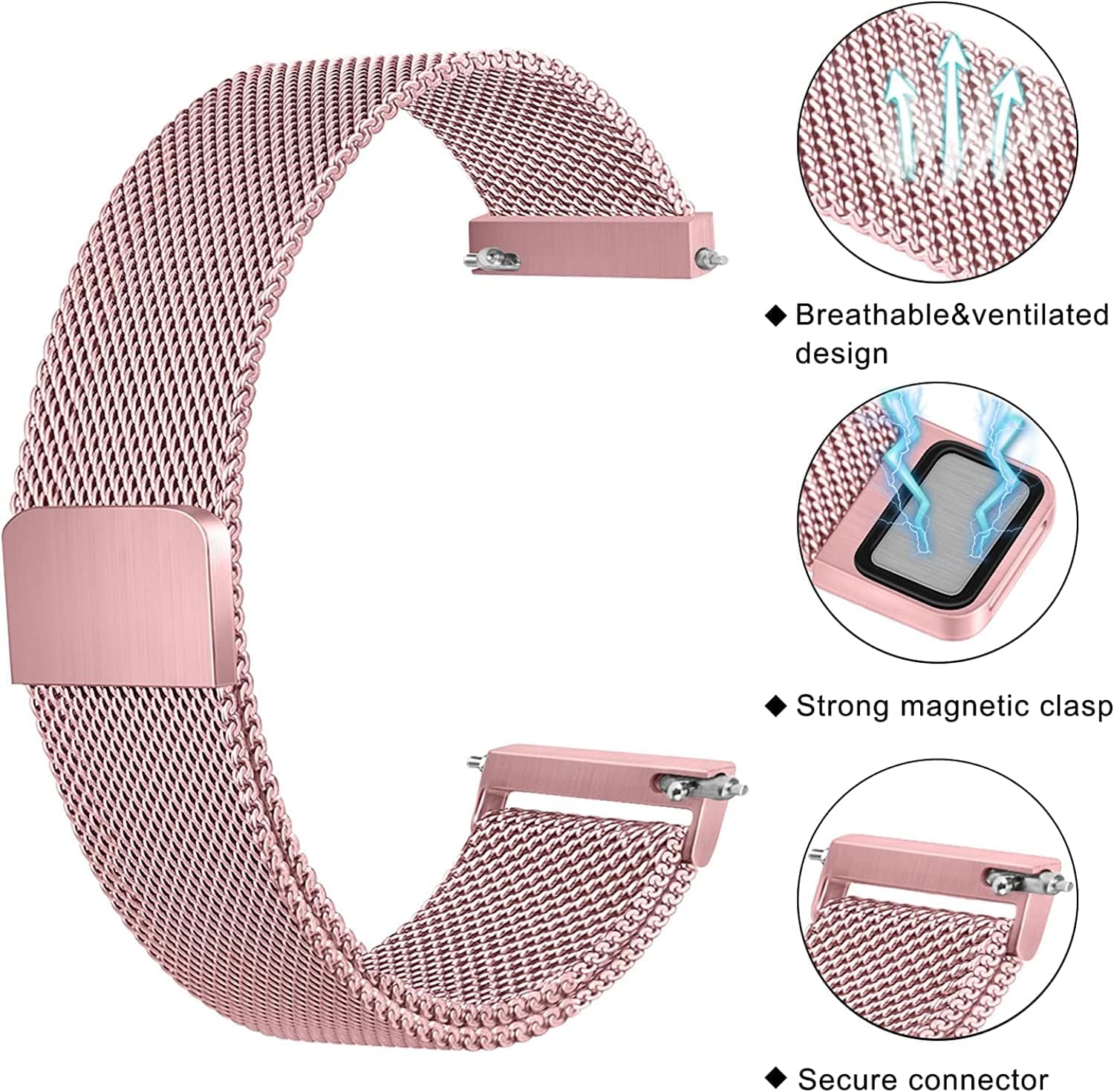 سوار ميلانيز معدني من فوسي متوافق مع امازفيت GTS 4/4 ميني / 3/2 / 2e / ميني، سوار ساعة بديل بمشبك مغناطيسي 20 ملم من الستانلس ستيل للرجال والنساء