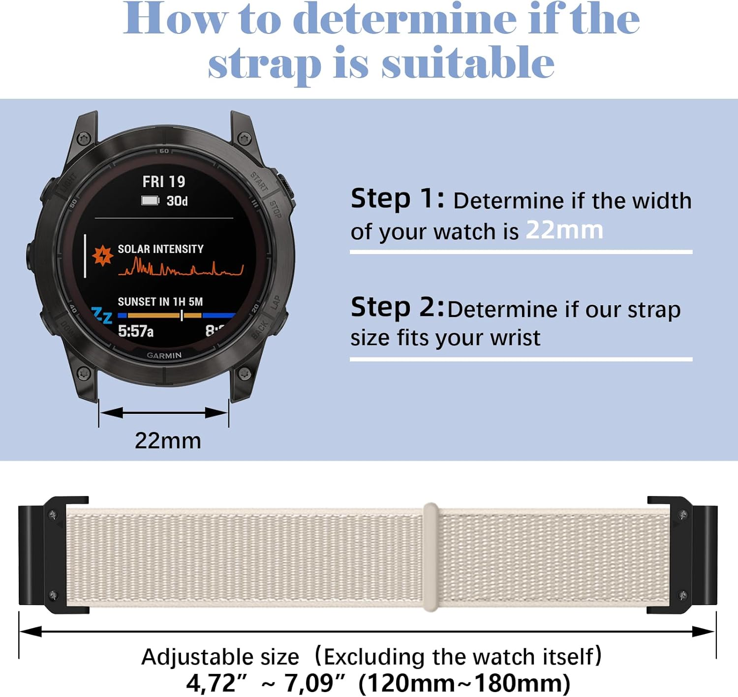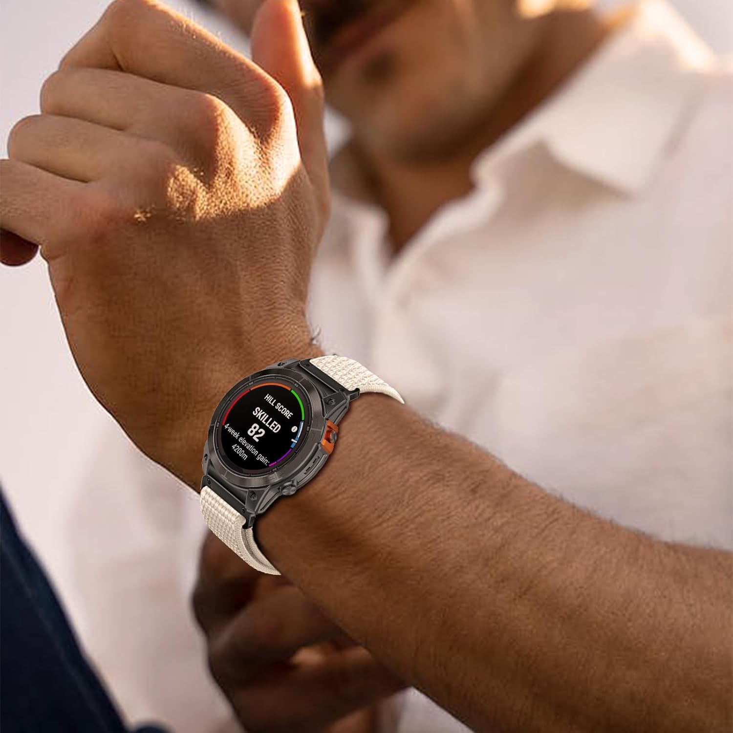 سوار نايلون سريع 22 ملم من ران بلو لساعة جارمين فينيكس 7/فينيكس 7 برو/فينيكس 6/فينيكس 6 برو/فينيكس 6 برو جي بي اس، اساور رياضية بديلة متوافقة مع جارمين ايبيكس 2/ابروتش S62، ابيض