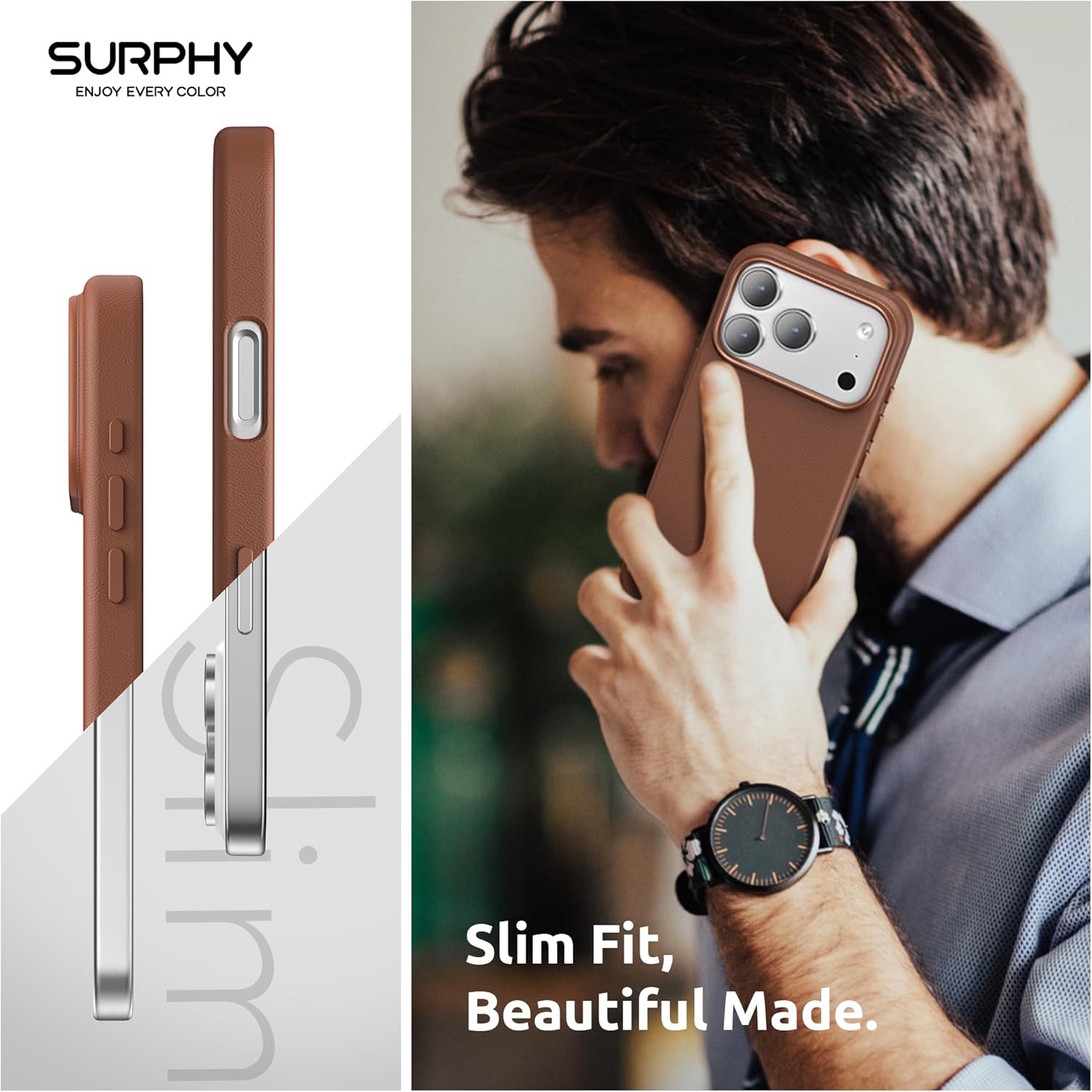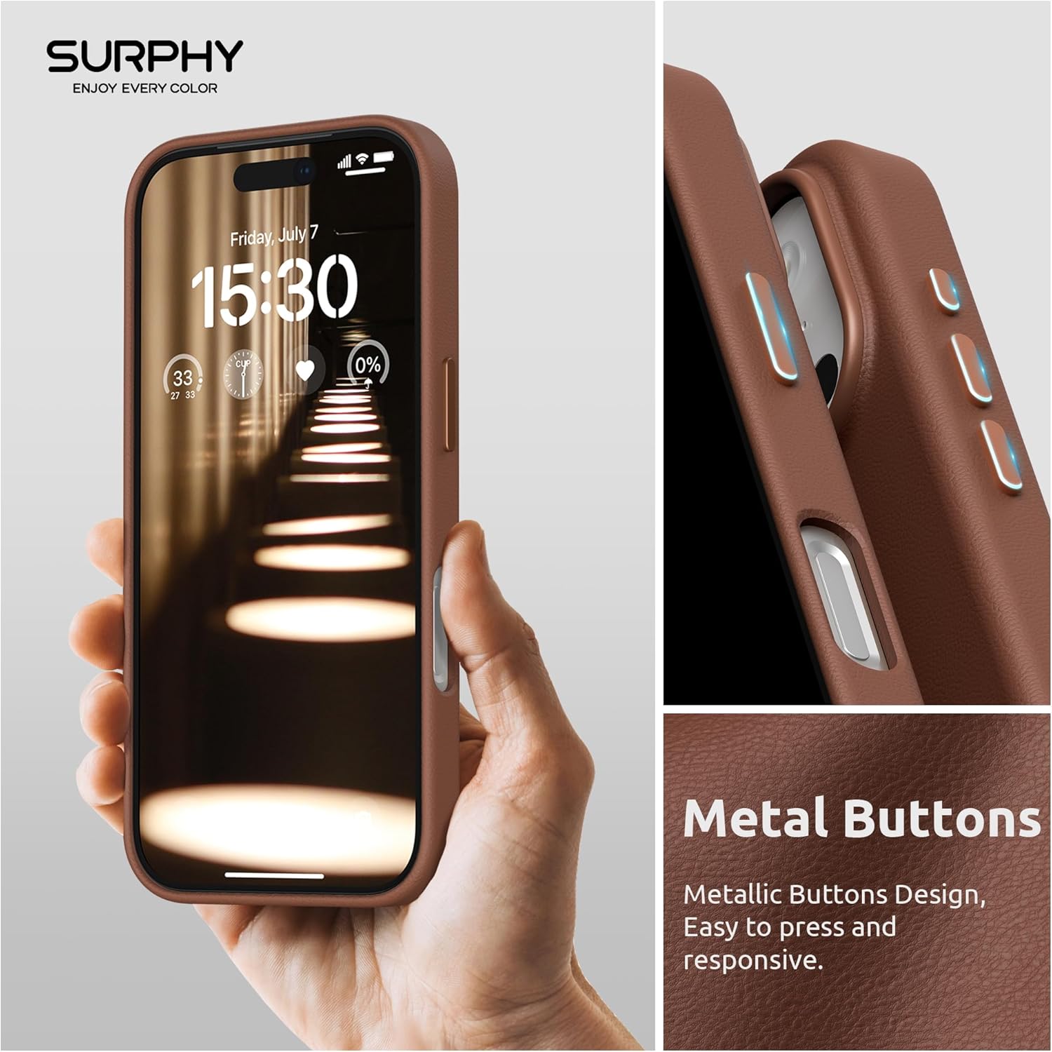 أزرار معدنية وبطانة من الألياف الدقيقة الناعمة: جراب جلدي SURPHY 17 Pro Max مع أزرار معدنية لأسلوب فاخر، سهولة الوصول إلى جميع الأزرار مع غطاء أزرار ذو استجابة سريعة. بطانة ناعمة من الألياف الدقيقة، والتي يمكن أن تحمي هاتفك من الخدش