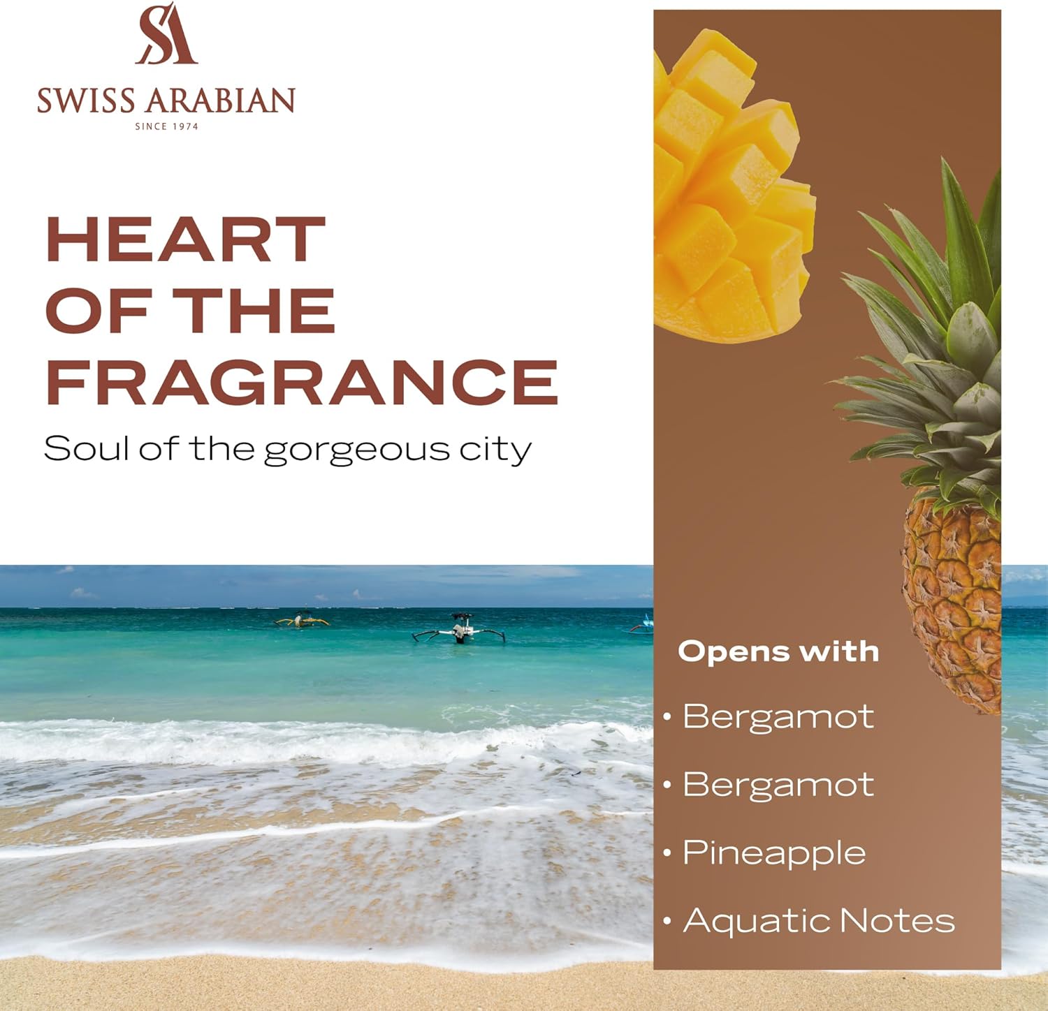 جوهر بالي في زجاجة: يعكس عطر سويس اريبيان هذا الإيقاع والحرية في الجزيرة. من الفاكهة النابضة بالحياة إلى الخشب المطحون، تعكس كل نفحة راحة وإثارة روح بالي. مصنوع ليشعر وكأنه هروب في كل بخاخ