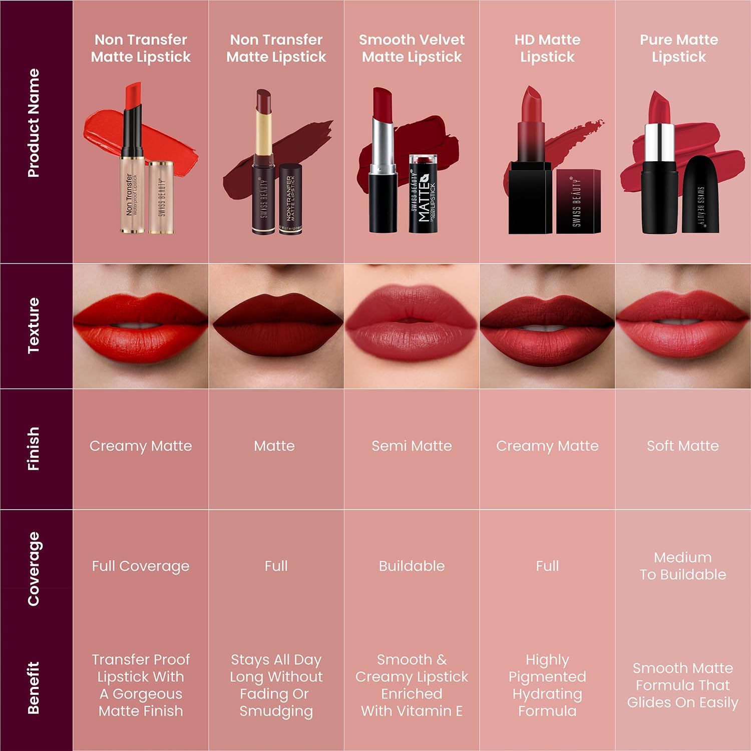 ظلال جميلة من القوة إلى الطبيعية تقريبًا. ألوان شفاه بألوان غنية مكثفة وترطيب