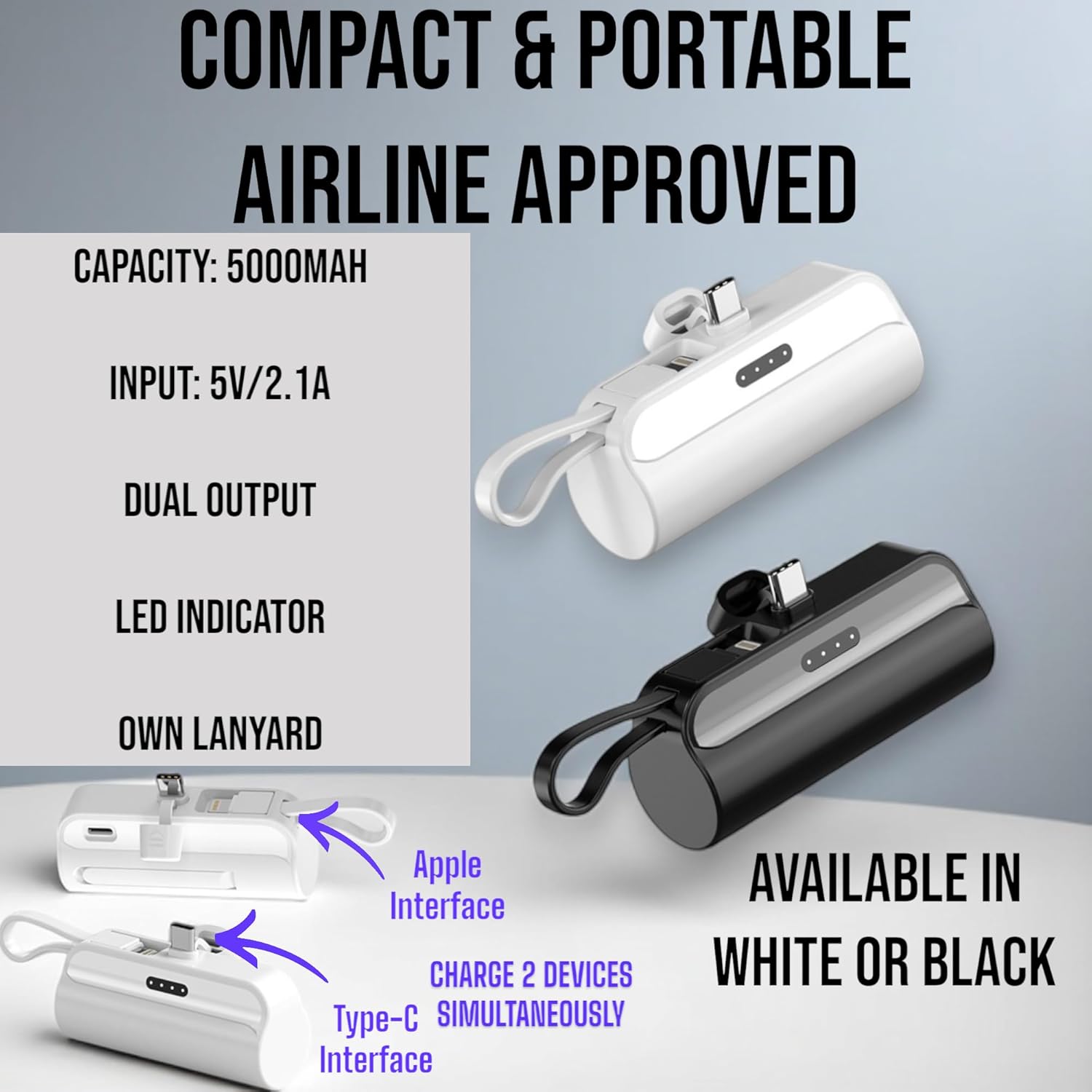 [سعة 5000 ميلي امبير في الساعة، طاقة موثوقة] قادرة على شحن معظم الهواتف الذكية عدة مرات، مما يجعلها خيارًا مثاليًا للتنقل اليومي أو السفر القصير.