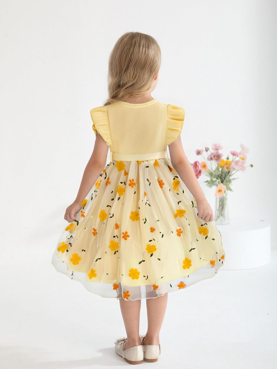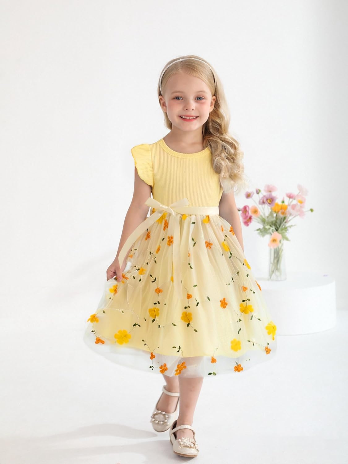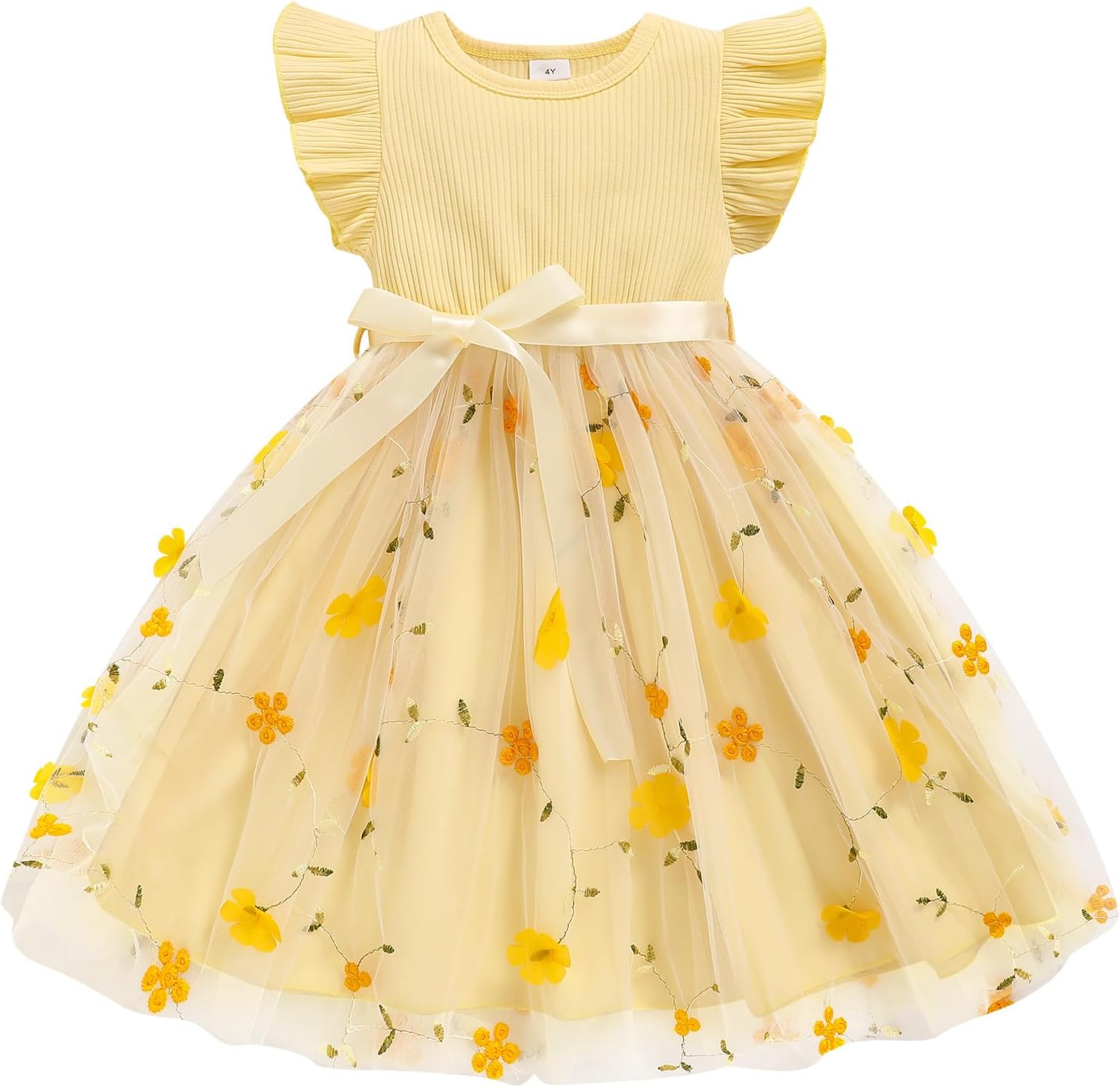 سينهون فستان تول للبنات الصغيرات، فستان صيفي مكشكش بدون اكمام للفتيات الصغيرات، فساتين كاجوال عصرية للبنات بعمر 1-6 سنوات