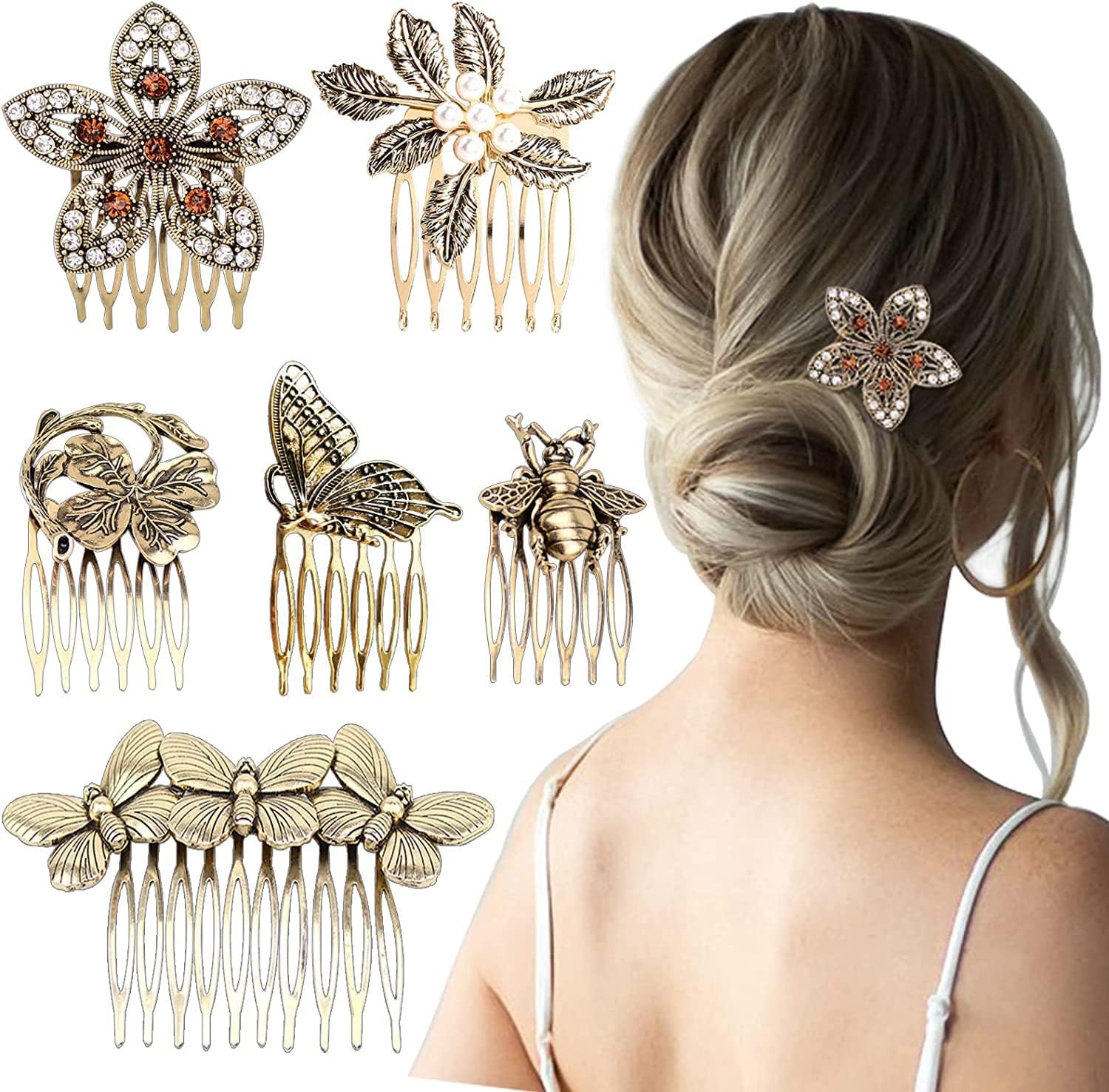☛ديكور مختلف كل يوم — 6 قطع من مشط الشعر بنمط القصر الذهبي العتيق في نفس العبوة. الفراشات والنحل والأوراق والزهور مزينة بـ 6 أشكال مختلفة