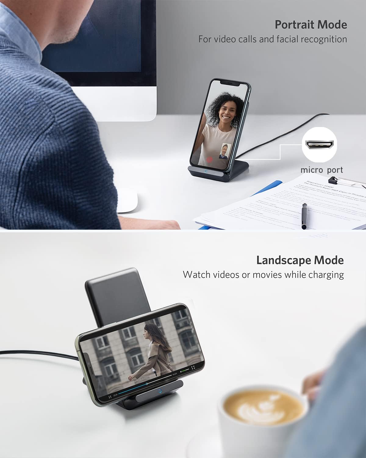 اقلبه: قم بالشحن في الاتجاه الأفقي أثناء مشاهدة مقاطع الفيديو أو وضع عمودي للرسائل والتعرف على الوجه.