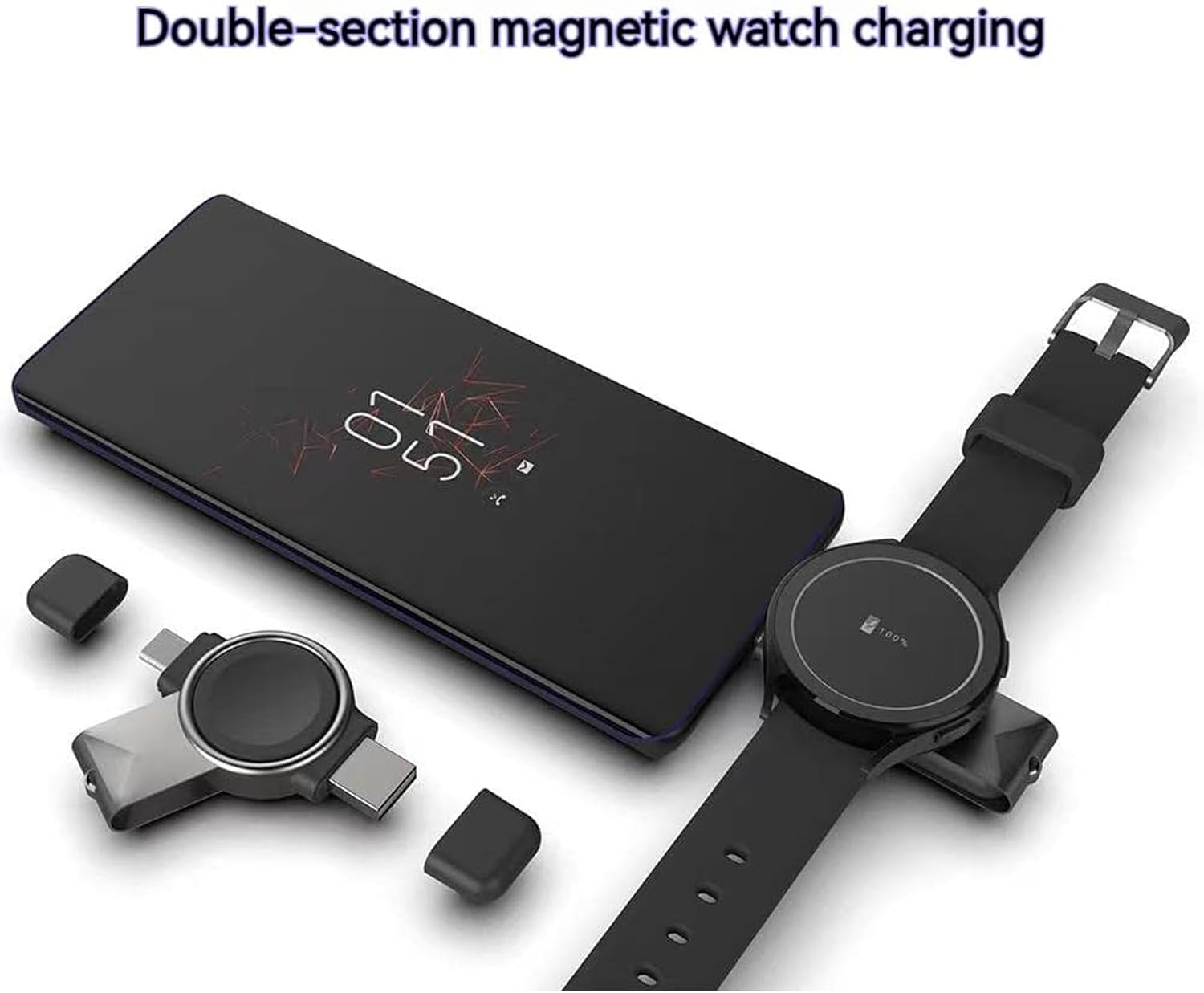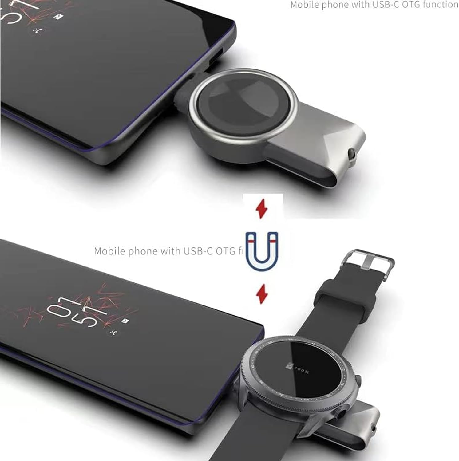 شاحن محمول من اليمينغيان لساعة سامسونج جالكسي 7/8، شاحن سفر 2 في 1 USB-C متوافق مع ساعة جالكسي 8/7/6/6 كلاسيك/5 برو/4/3، قابل للدوران 90 درجة لشحن الساعة الذكية جالكسي
