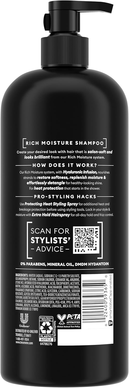 نظام غني بالرطوبة: شامبو تريزدمي Rich Moisture للشعر الجاف، مع Hyaluronic Plex، يغذي الخيوط مما يجعلها تشعر بالترطيب والنعومة مع لمعان صحي المظهر