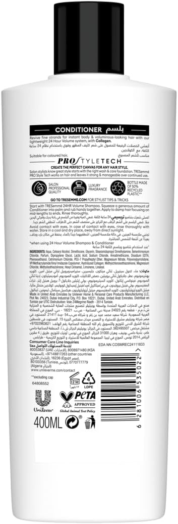 هل تشعر بالتسطح؟ هل تحتاج إلى رفع؟ أصبح الشعر أكثر كثافة في متناول اليد مع شامبو وبلسم تريزدمي 24 Hour Volume & Body ، وهو نظام كامل لعلاج الشعر مصمم خصيصًا لمساعدة شعرك على الظهور بمظهر أكثر امتلاءً وكثافة وصحة. بلسم تريزدمي لتكثيف الشعر والجسم لمدة 24 ساعة مصنوع من الكولاجين ليمنحك كثافة وترتد طوال اليوم دون أن تثقل شعرك. هذه التركيبة القوية ذات الجودة الاحترافية ستحافظ على شعرك من السقوط بشكل مسطح لمدة تصل إلى 24 ساعة. استمتع بجسم وحجم خفيف الوزن مع ارتداد طبيعي وقتما تشاء لأن هذا البلسم خفيف بما يكفي للاستخدام اليومي. أولاً، نظفي شعرك بلطف باستخدام شامبو تريزدمي لتكثيف الشعر والجسم على مدار 24 ساعة. ثم استخدمي هذا البلسم لتغذية كل خصلة بشكل مكثف. ضعي كمية وفيرة من البلسم في راحة يدك وافركي يديك معًا. وزعي البلسم بالتساوي على الشعر الرطب مع التركيز على الأطوال المتوسطة إلى الأطراف. ضعي أي بلسم متبقي باتجاه الجذور. اتركيه لمدة 2-3 دقائق ثم اشطفيه جيدًا. تقدم تريزدمي منتجات ذات جودة احترافية مستوحاة من الموضة حتى تتمكن من الحصول على قوة الشعر الرائع كل يوم. هل تحب نصائحنا ومنتجات العناية بالشعر؟ اترك تقييمًا على موقعنا الإلكتروني ومنصة التجارة الإلكترونية.