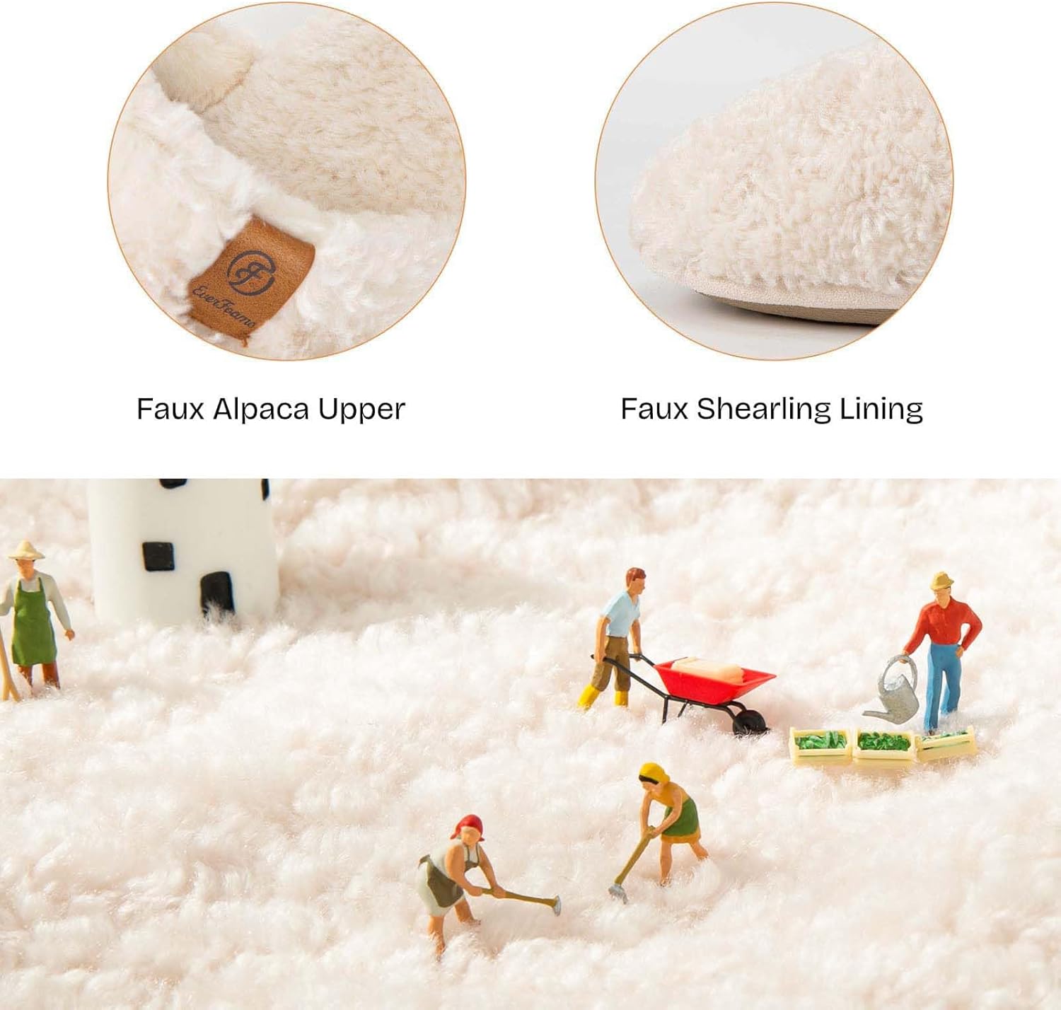 – مصنوعة من فرو صناعي زغبي وإسفنج ميموري فوم مرن، وهي مصممة لتناسب قدميك، مما يضمن الراحة طوال اليوم.