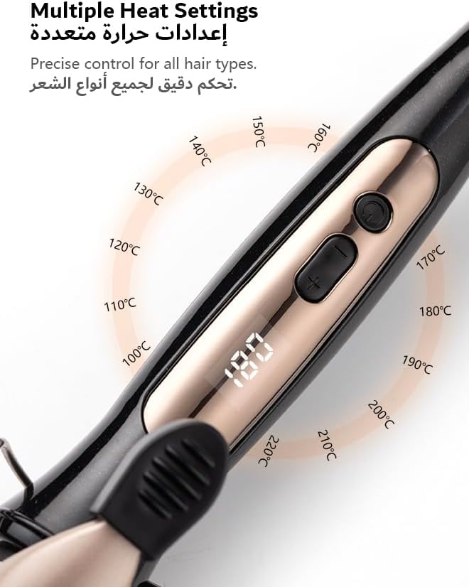 إعدادات درجة الحرارة القابلة للتعديل: تحتوي مكواة التجعيد 25 ملم هذه على شاشة LED توفر تعديلات دقيقة لدرجة الحرارة تتراوح من 100 درجة مئوية إلى 220 درجة مئوية.
