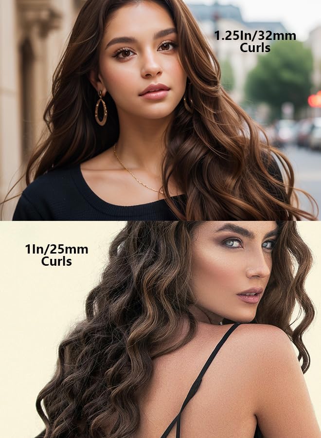تميز سيراميك الكوارتز: تتميز بأسطوانة 25 ملم مع لمسة نهائية مطلية بسيراميك الكوارتز، وتعدك هذه التجعيد بتوزيع متساوٍ للحرارة للحصول على تجعيدات ناعمة خالية من العيوب.