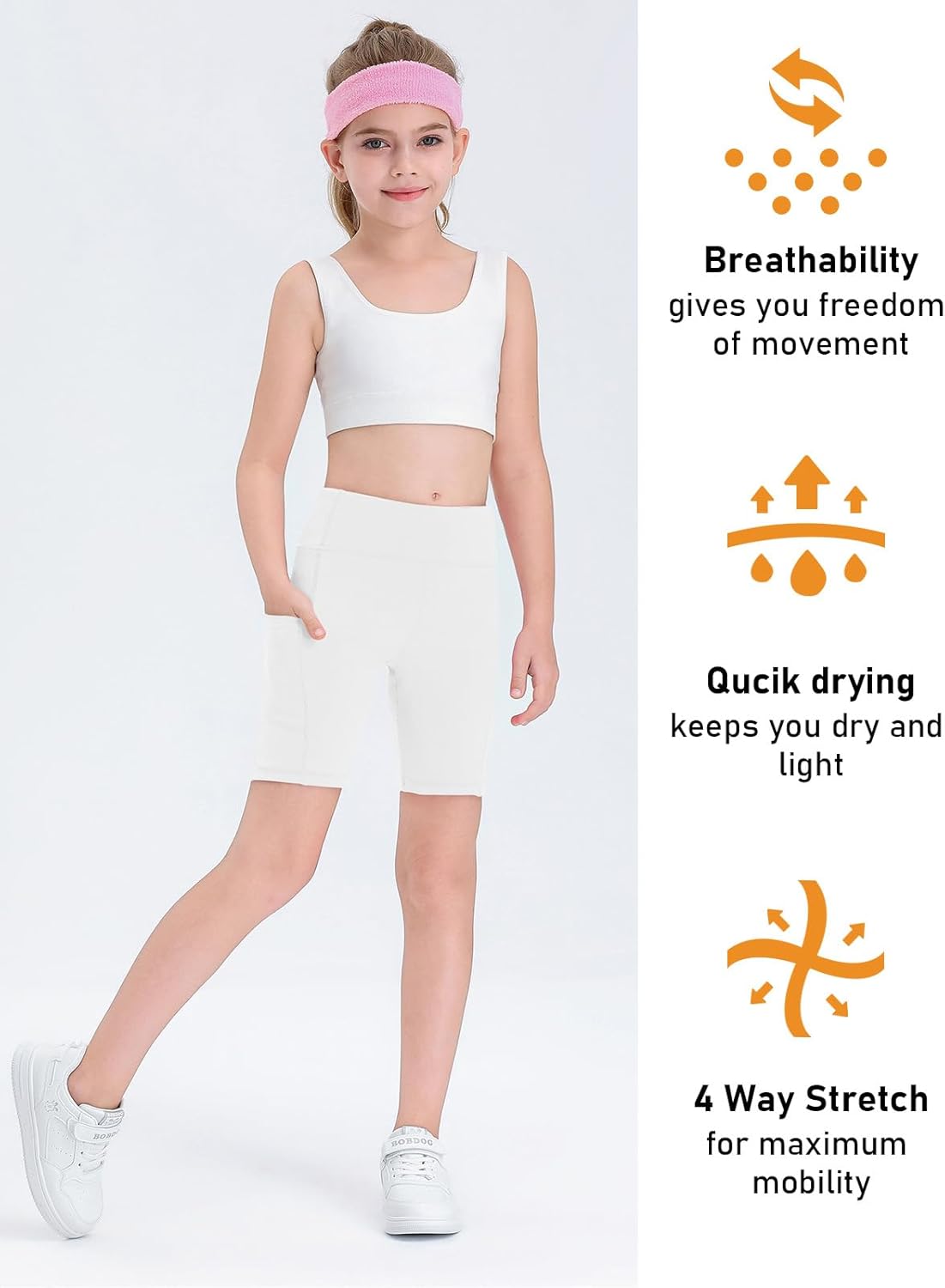 شورت رياضي من السباندكس لكرة الطائرة للاطفال لراكبي الدراجات والرقص والجمباز مع جيوب