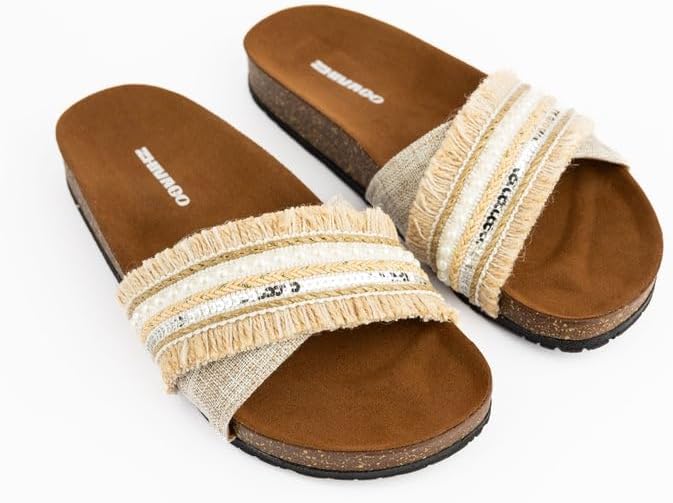 صندل زيفاجو مصنوع يدويا من بيكابو، تصميم حزام متقاطع مطرز، نعل منسوج ناعم، بيج