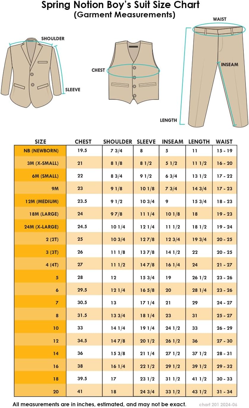 تم تصميم طقم البدلة الكلاسيكي هذا مع ملاءمة أكثر راحة من البدلة العصرية (B017WNXY0A،B017WNY0KS ). يشمل هذه الطقم الكامل جاكيت وسترة وبنطال وقميص وربطة عنق. تأتي بعض الأنماط مع ربطة عنق من الساتان بالإضافة إلى ربطة عنق سوداء أساسية. الطقم مصنوع من البوليستر بنسبة 100%، باستثناء القميص المصمم من 65% بوليستر و35% قطن. للحصول على ربطات عنق مختلفة الألوان، يُرجى البحث عن بدلة سبرينغ نوشن الرسمية للأولاد مع ربطة عنق من الساتان أو B01L3NF606.