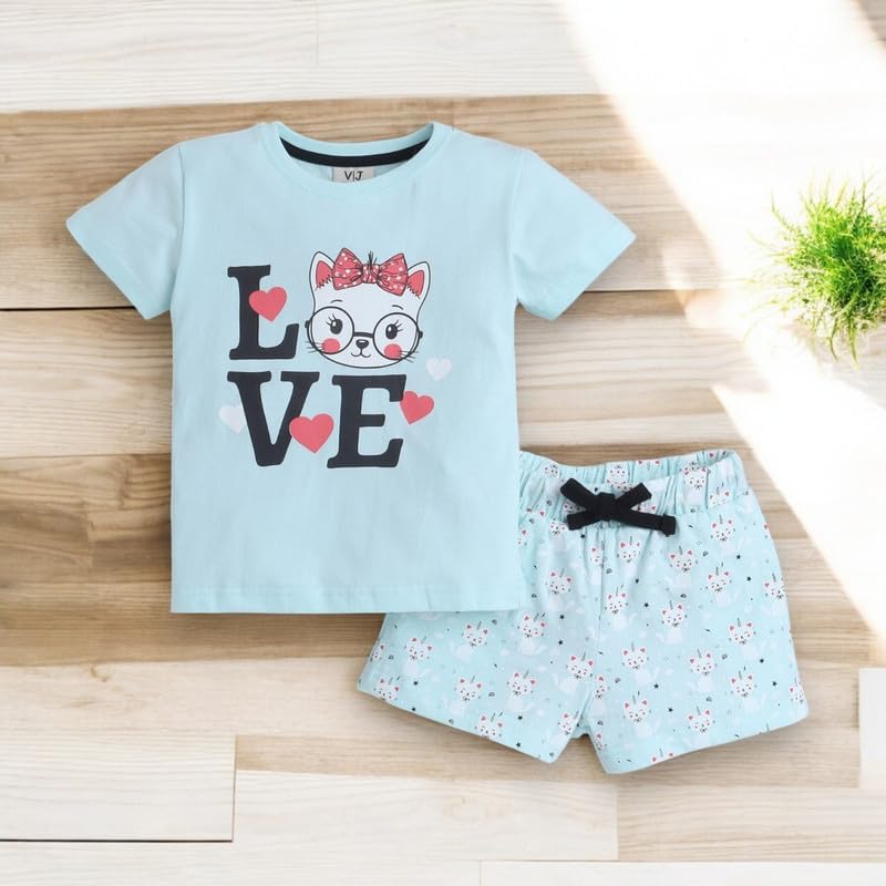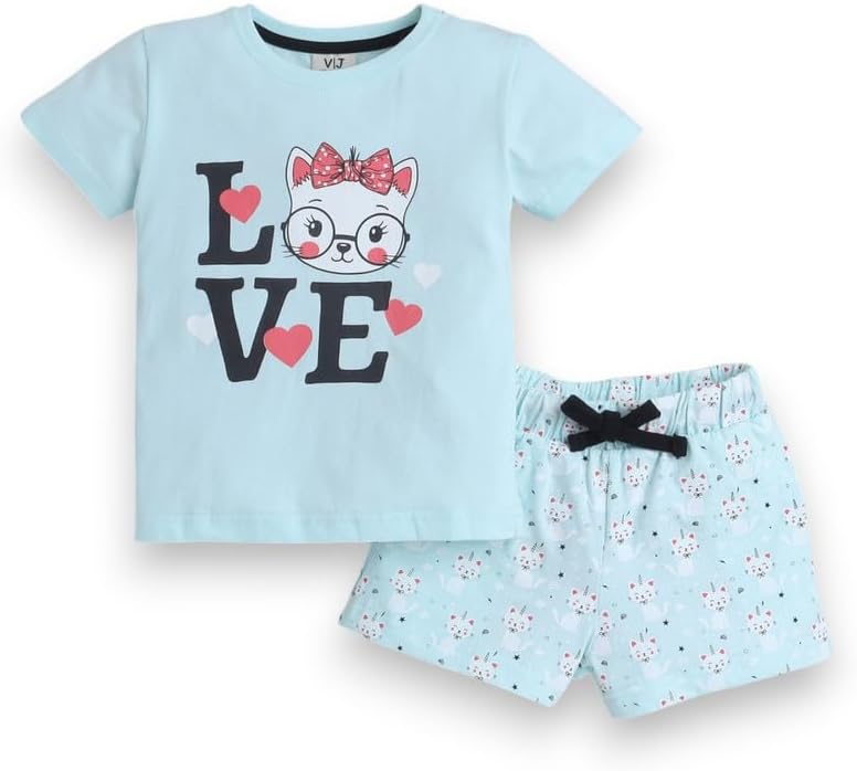 شراء طقم بيجامة مكون من تيشرت وشورت مطبوع للبنات الصغيرات من فيكتور اند جين، SS24GPJST223 اون لاين من امازون او نون وحراج طقم بيجامة مكون من تيشرت وشورت مطبوع للبنات الصغيرات من فيكتور اند جين، SS24GPJST223