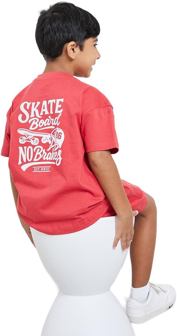شراء طقم تيشيرت وشورت برسومات لوح تزلج للاولاد من ستايلي، لون احمر اون لاين من امازون او نون الامارات طقم تيشيرت وشورت برسومات لوح تزلج للاولاد من ستايلي، لون احمر