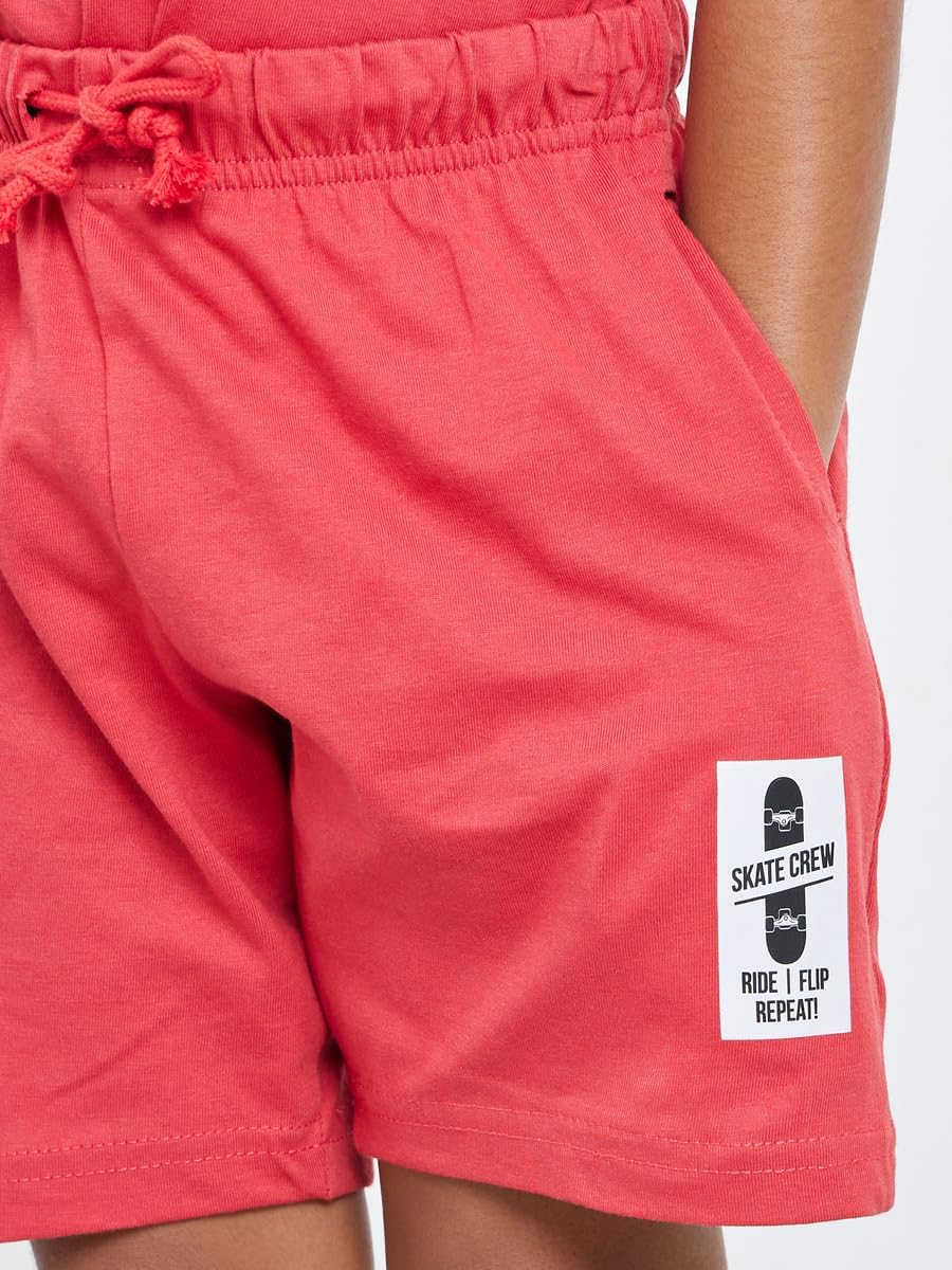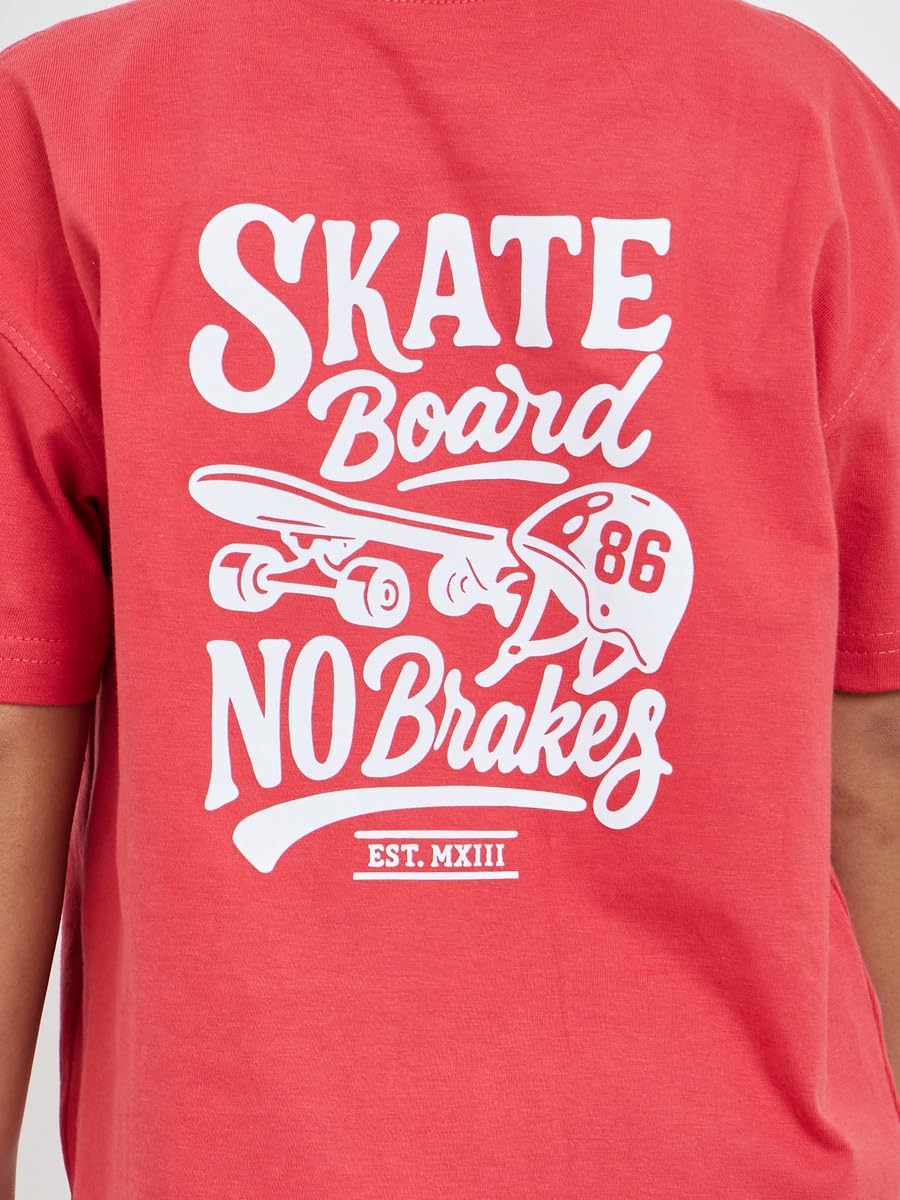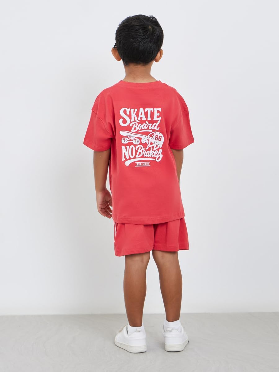 طقم تيشيرت وشورت برسومات لوح تزلج للاولاد من ستايلي، لون احمر