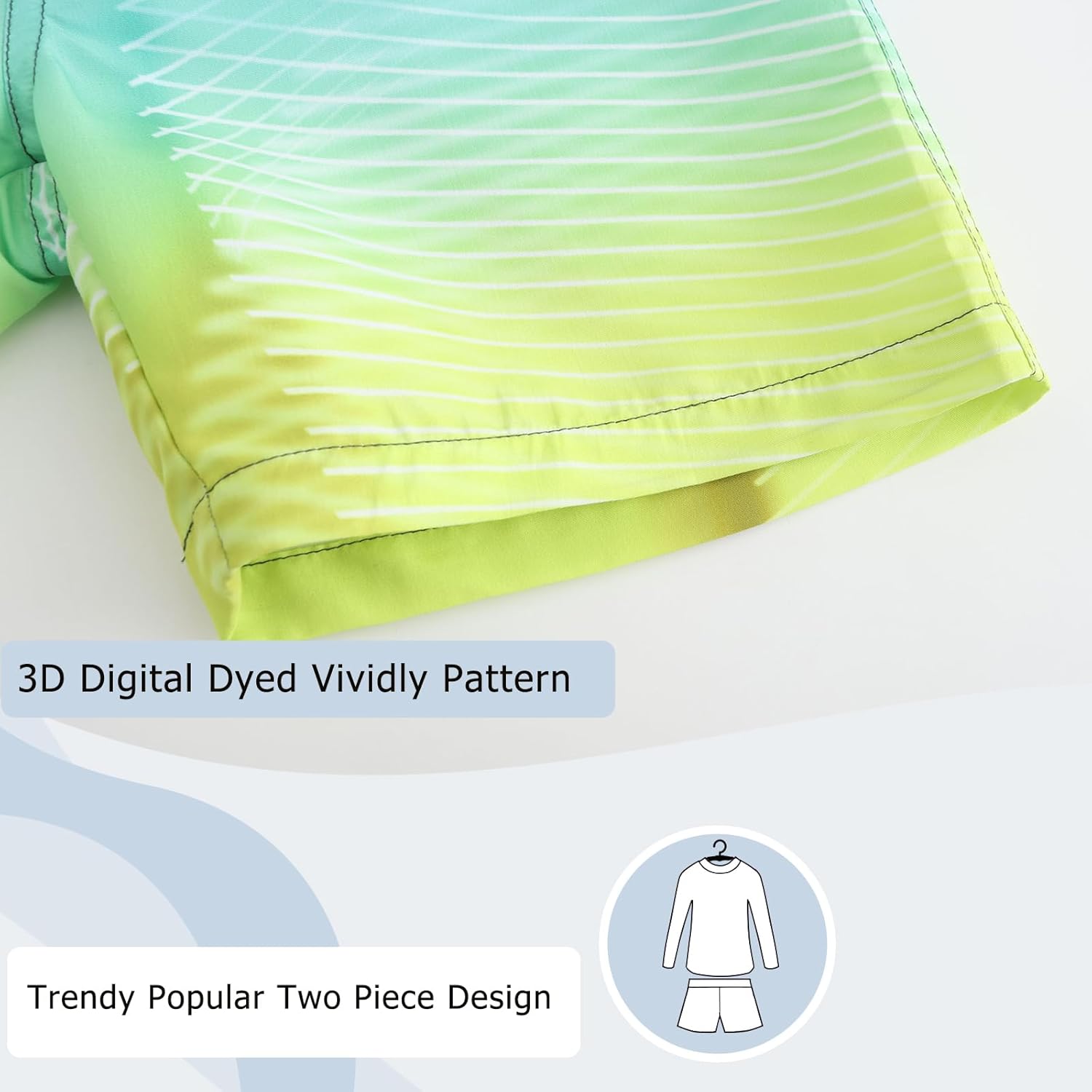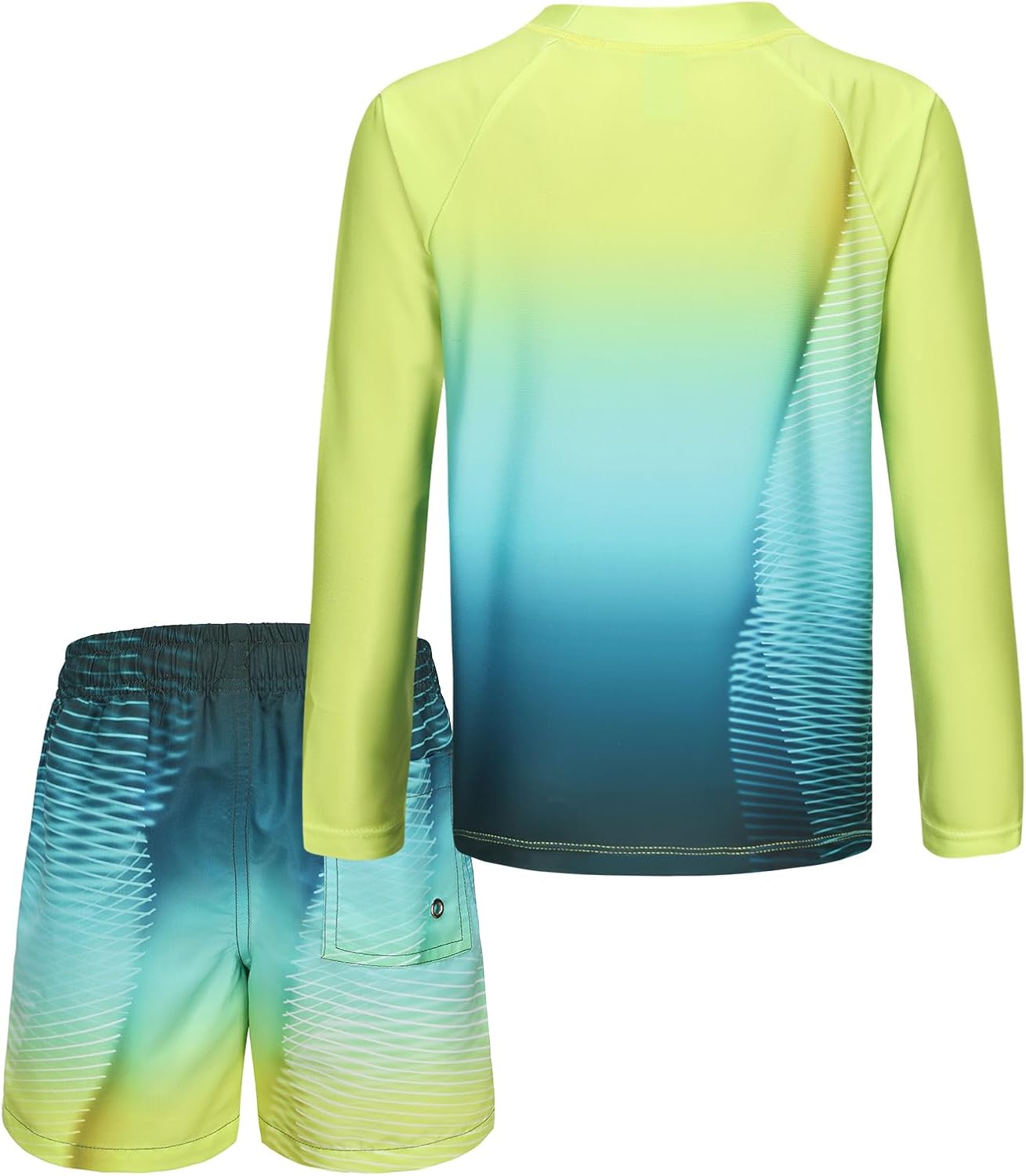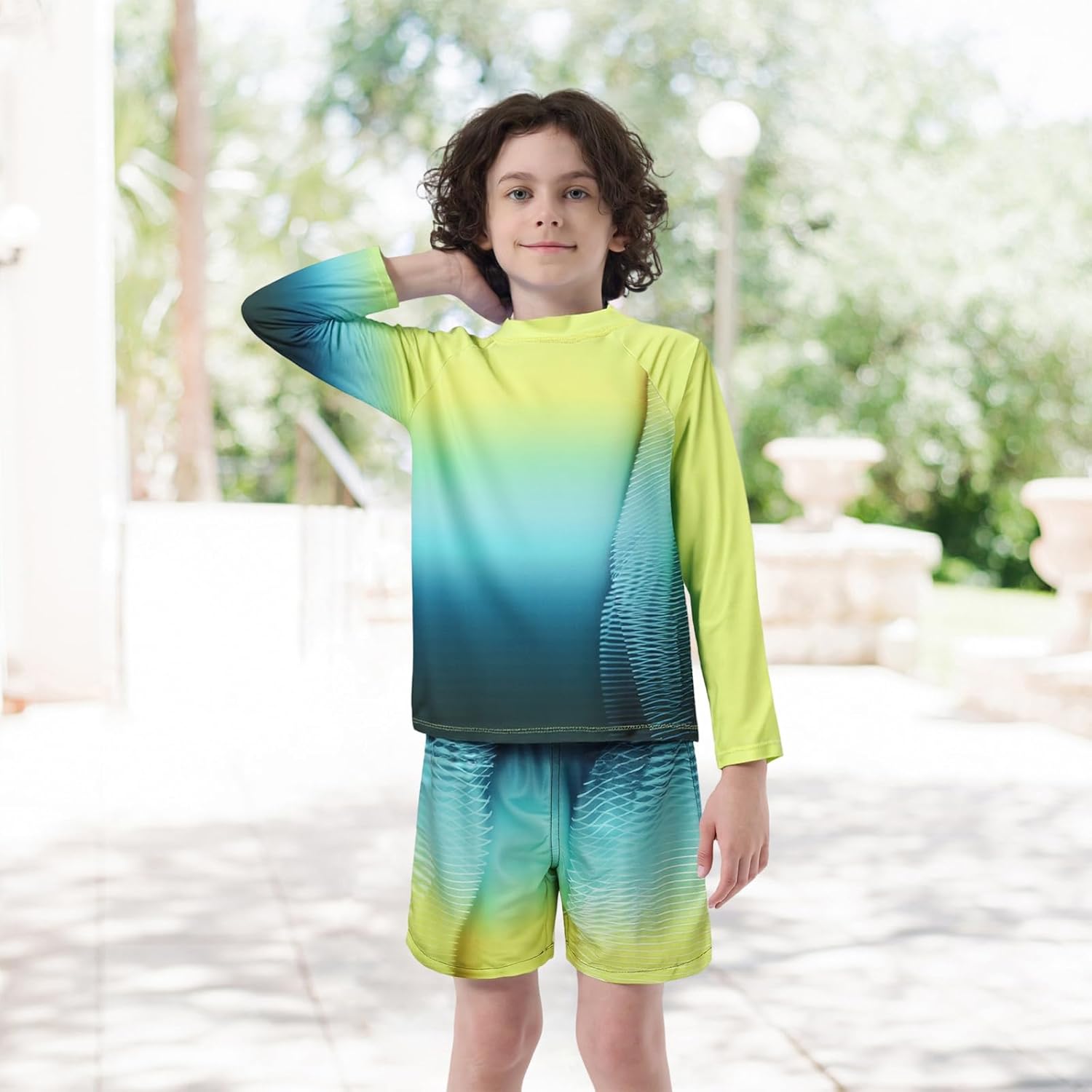 طقم ملابس سباحة للاولاد مكون من قطعتين مع سروال سباحة باكمام طويلة للاطفال