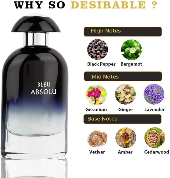 عطر بلو ابسولو للرجال من ريفس | او دي بارفان يدوم طويلا | عطر فاخر يدوم طويلا مع روائح الحمضيات والزهور والخشب | عطر مثالي للارتداء اليومي، 100 مل