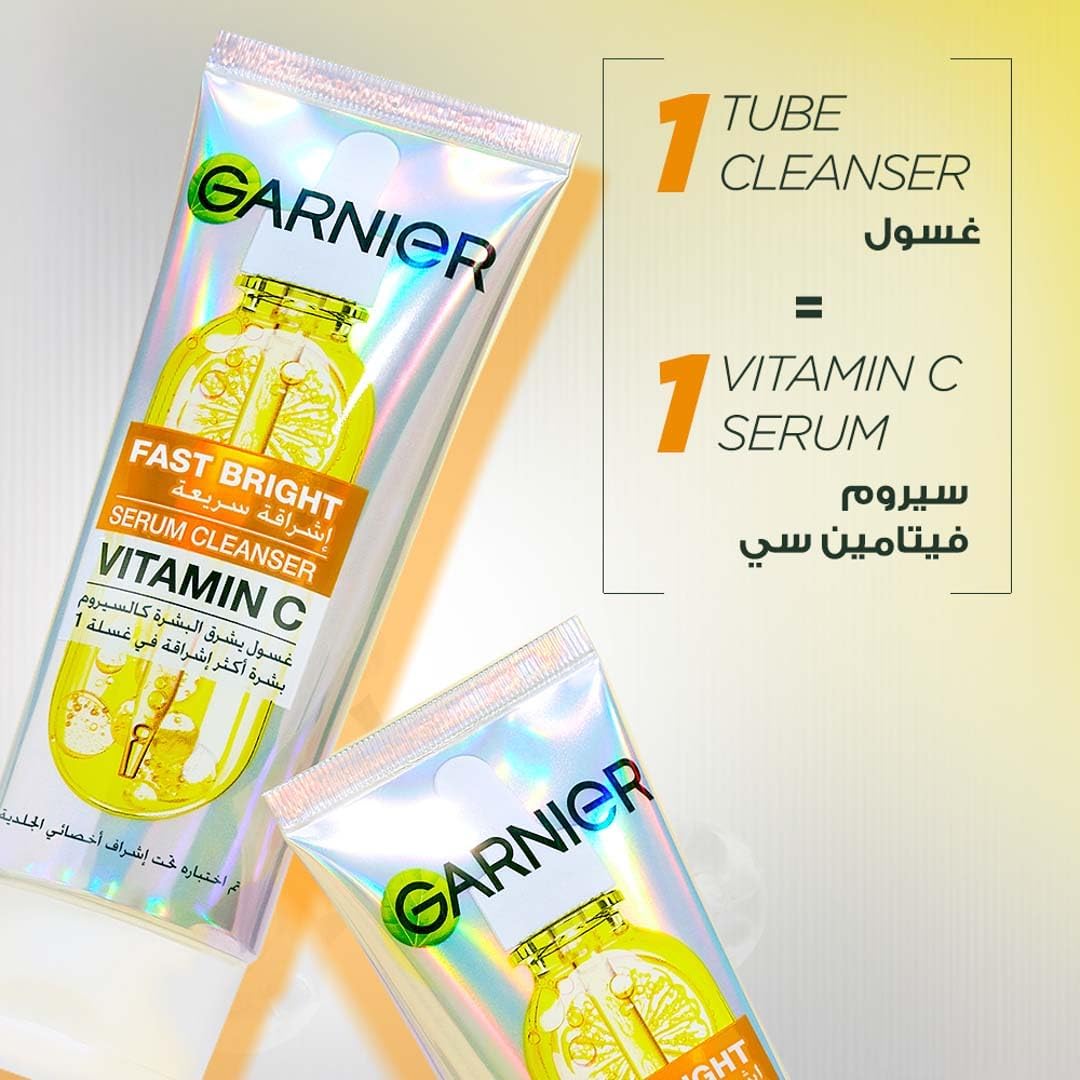 غسول الوجه غارنييه سكين أكتيف فاست برايت بفيتامين C ،منظّف لطيف يمنح البشرة إشراقة فورية وتأثيراً مشابهاً للسيروم، مناسب لجميع أنواع البشرة – 100 مل