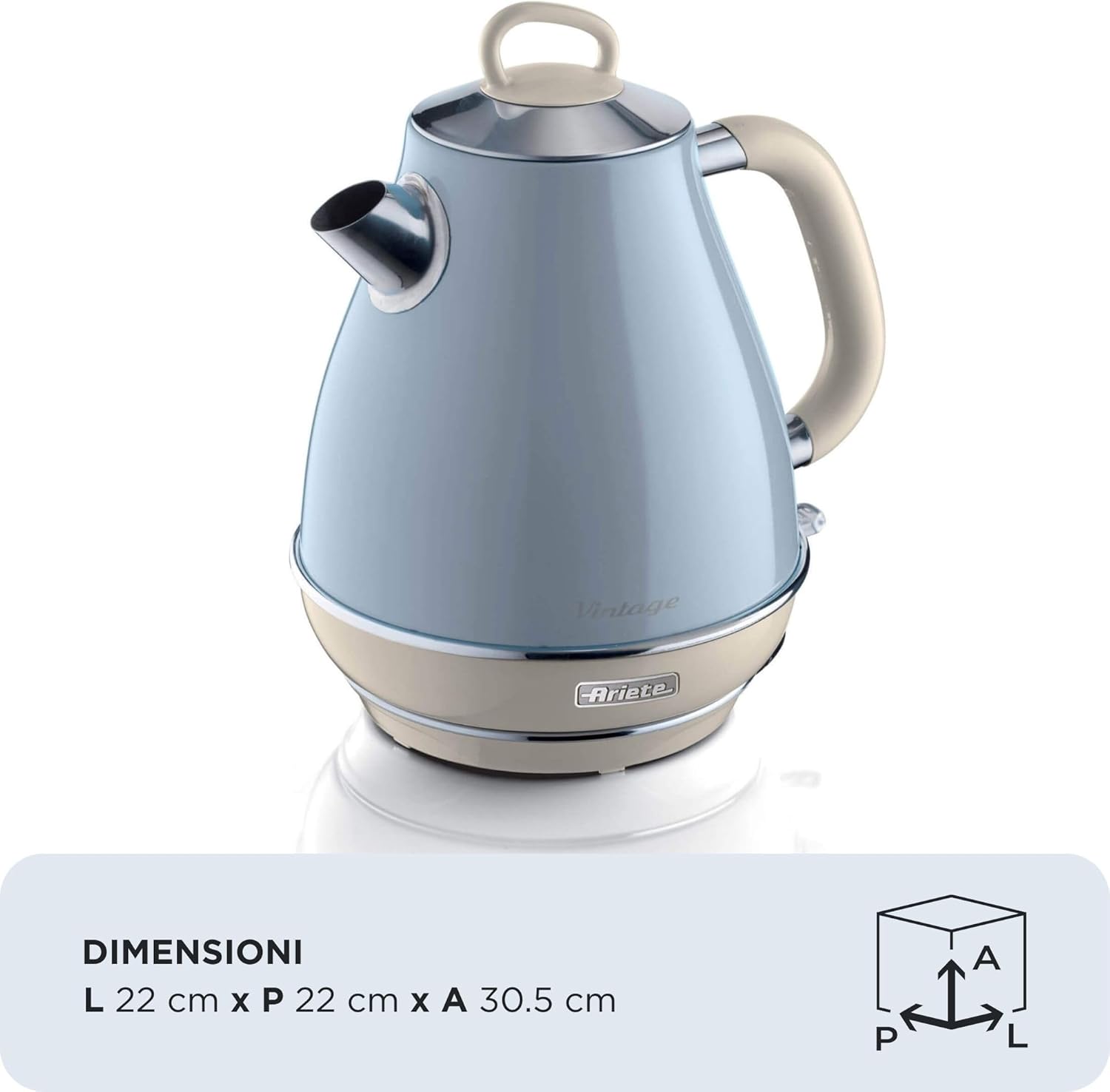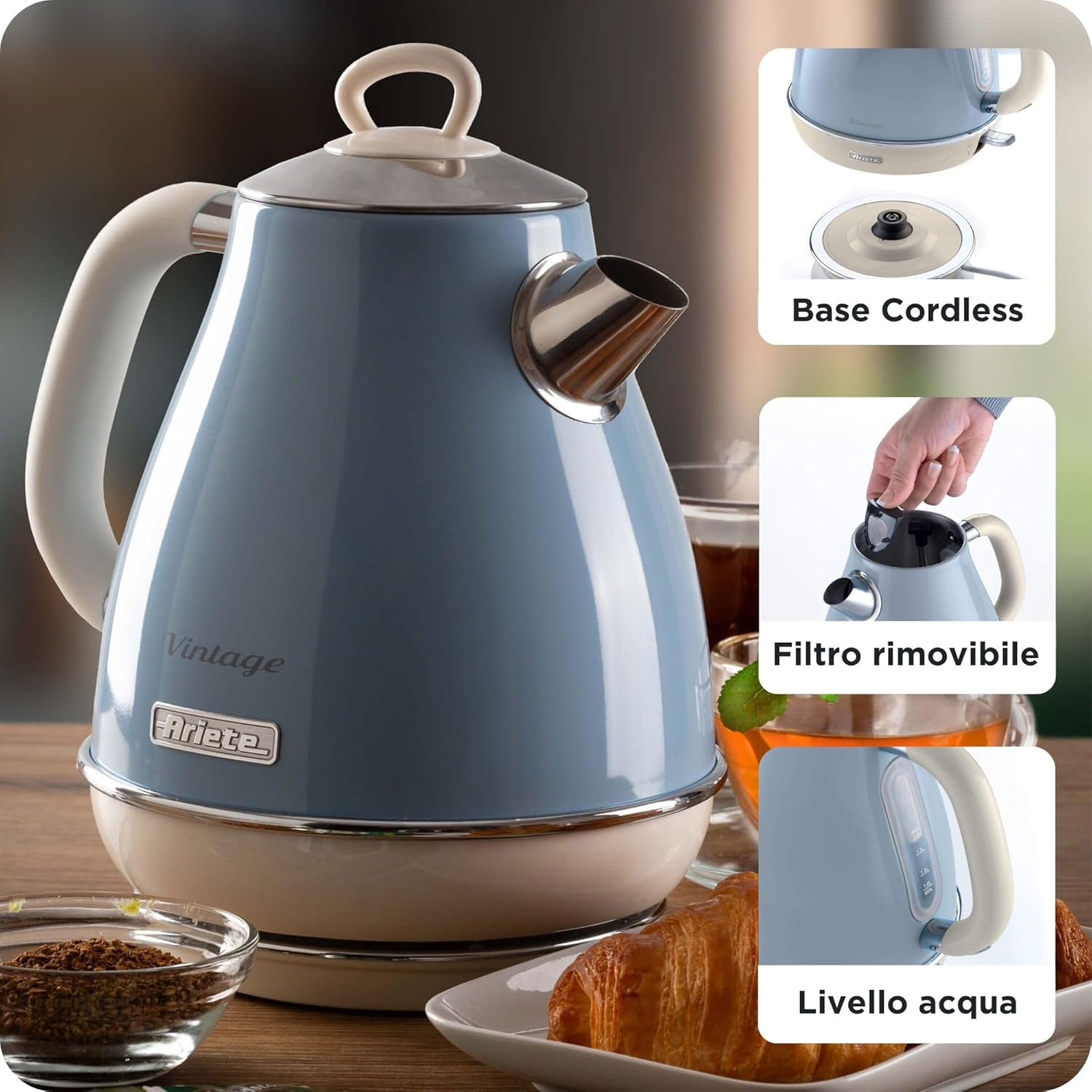 غلاية ابريق لاسلكية طراز ريترو 2869/05 من اريتي، فلتر خارجي قابل للازالة وبارد للمس، سعة 1.7 لتر، تصميم عتيق، ازرق ‘ضمان المصنع لمدة عام واحد على الاقل’