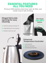 4. ستانلس ستيل – هذه الغلاية الكهربائية مصنوعة من الستانلس ستيل وتتميز بمتانتها وهي أداة مطبخ صحية لتسخين الماء، كما أنها سهلة التنظيف للغاية.