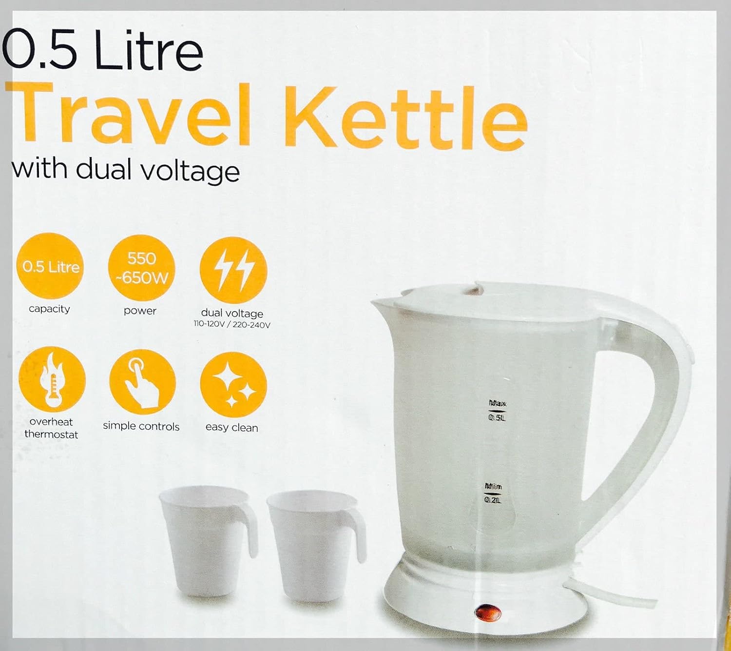 غلاية كهربائية صغيرة جديدة بسعة 0.5 لتر من لوكس ديفا بسعة 0.5 لتر بلون ابيض + كوبين