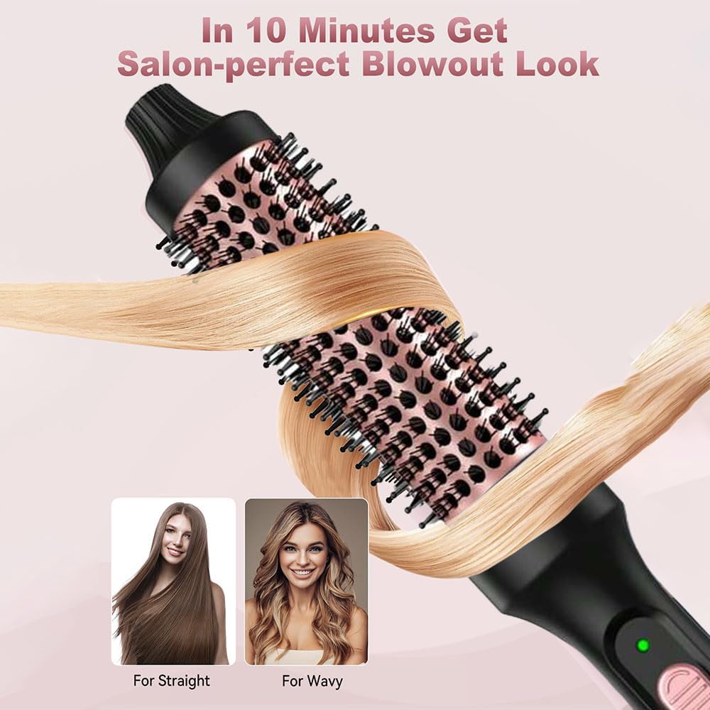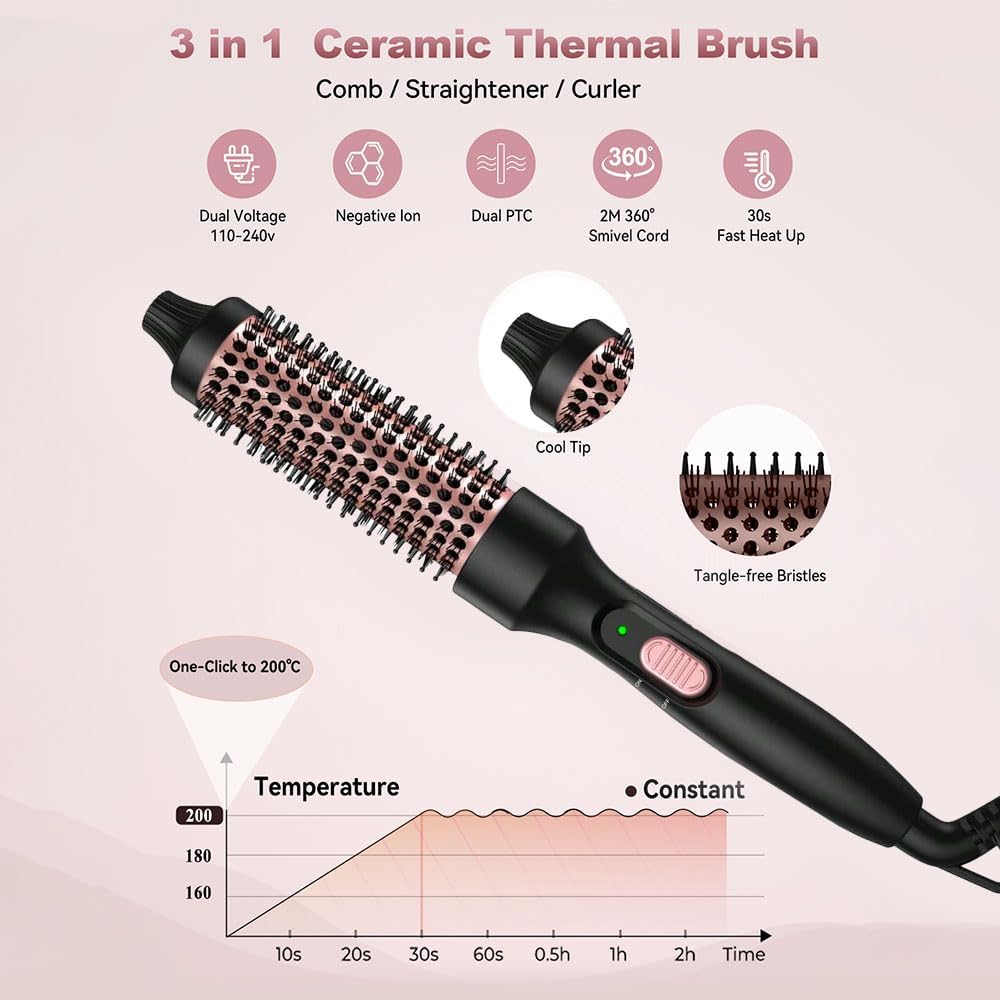 احصلي على تجعيدات وكثافة رائعة مع الفرشاة الحرارية الخاصة بنا – ابتكر مجموعة متنوعة من تسريحات الشعر الجذابة دون عناء مع الحفاظ على شعرك محميًا! احصلي على تموجات كبيرة وناعمة ونطاطة في ثوانٍ مع فرشاة الشعر الساخنة. ببساطة قم بلفها حول شعرك وافرديها للحصول على أكثر التموجات المبهجة والحيوية التي رأيتها على الإطلاق. قولي وداعًا لأساليب التصفيف المعقدة ومرحبًا بتجعيد الشعر المموج بدون مجهود. هذه هي الهدية المثالية لكل امرأة لتعزيز جمالها وثقتها. جربي التنوع المطلق الذي يلبي جميع احتياجات تصفيف الشعر.
