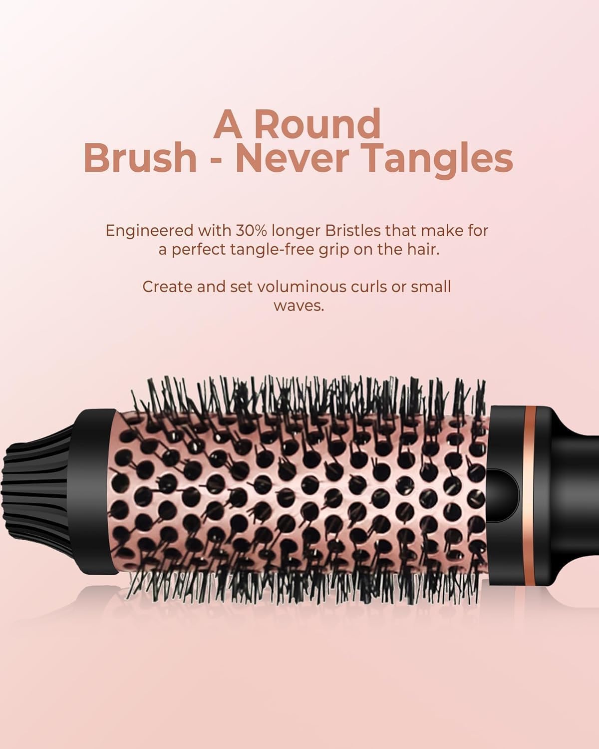 【تقنية سيراميك تورمالين أيونية أقل 4 أضرار وتجعد】الفرشاة المستديرة الساخنة مع أسطوانة التورمالين السيراميك تنبعث منها أيونات سالبة مباشرة تخترق الشعر بسرعة للمساعدة في حبس الرطوبة وتغذية الشعر التالف والأطراف المتقصفة، مما يقلل من التجعد والكهرباء الساكنة والتشابك لجعل الشعر أكثر نعومة ولمعانًا. مع فرشاة التورمالين الحرارية الخاصة بنا للحصول على شعر صحي، مما يجعل شعرك يبدو صحيًا ولامعًا.