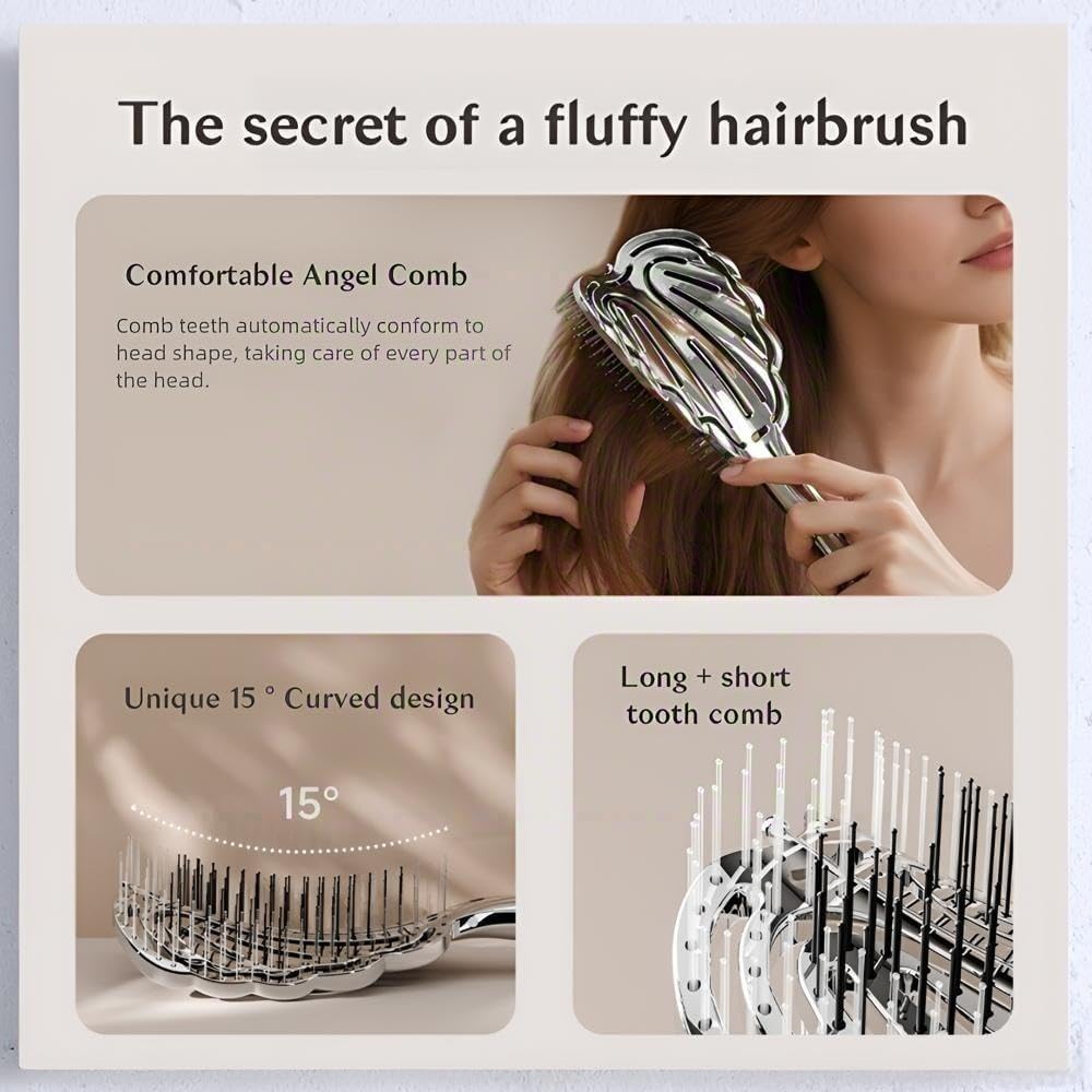 1. تصميم ثوري لتصفيف الشعر: تتوافق أسنان المشط تلقائيًا مع شكل الرأس، والتصميم القوس بزاوية 15 درجة يجعل تمشيط الشعر أسرع وأسهل.