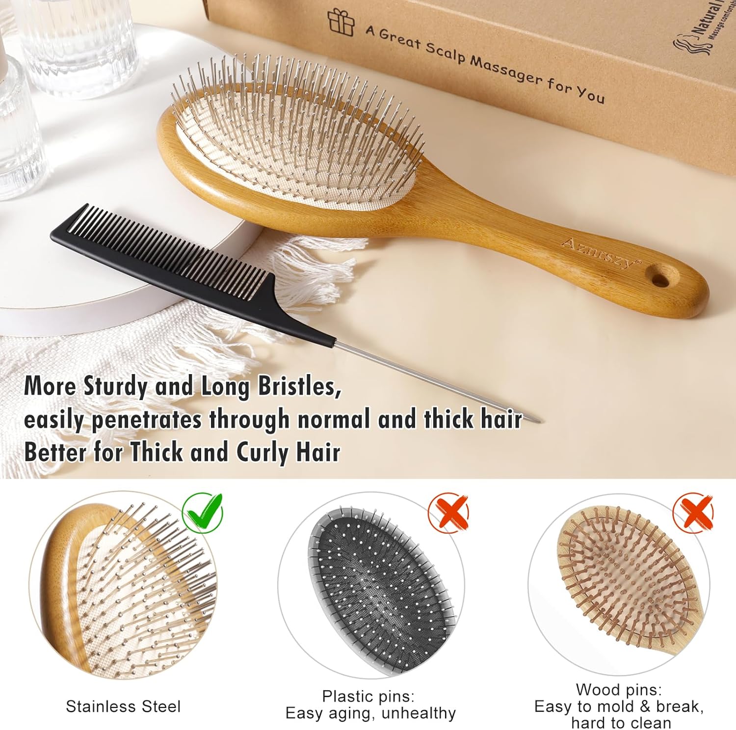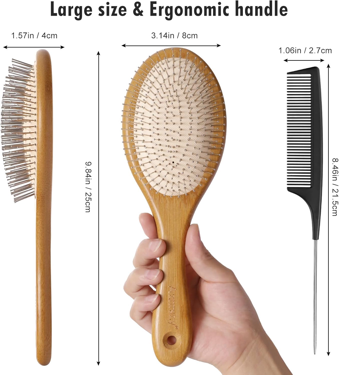 مادة صحية: مصنوعة من الخيزران والستانلس ستيل عالي الجودة، مما يجعل فرشاة الشعر تبدو طبيعية ومتينة. يوفر تجربة تنظيف مريحة وفعالة لجميع أنواع الشعر، خاصة للشعر الكثيف والمجعد.