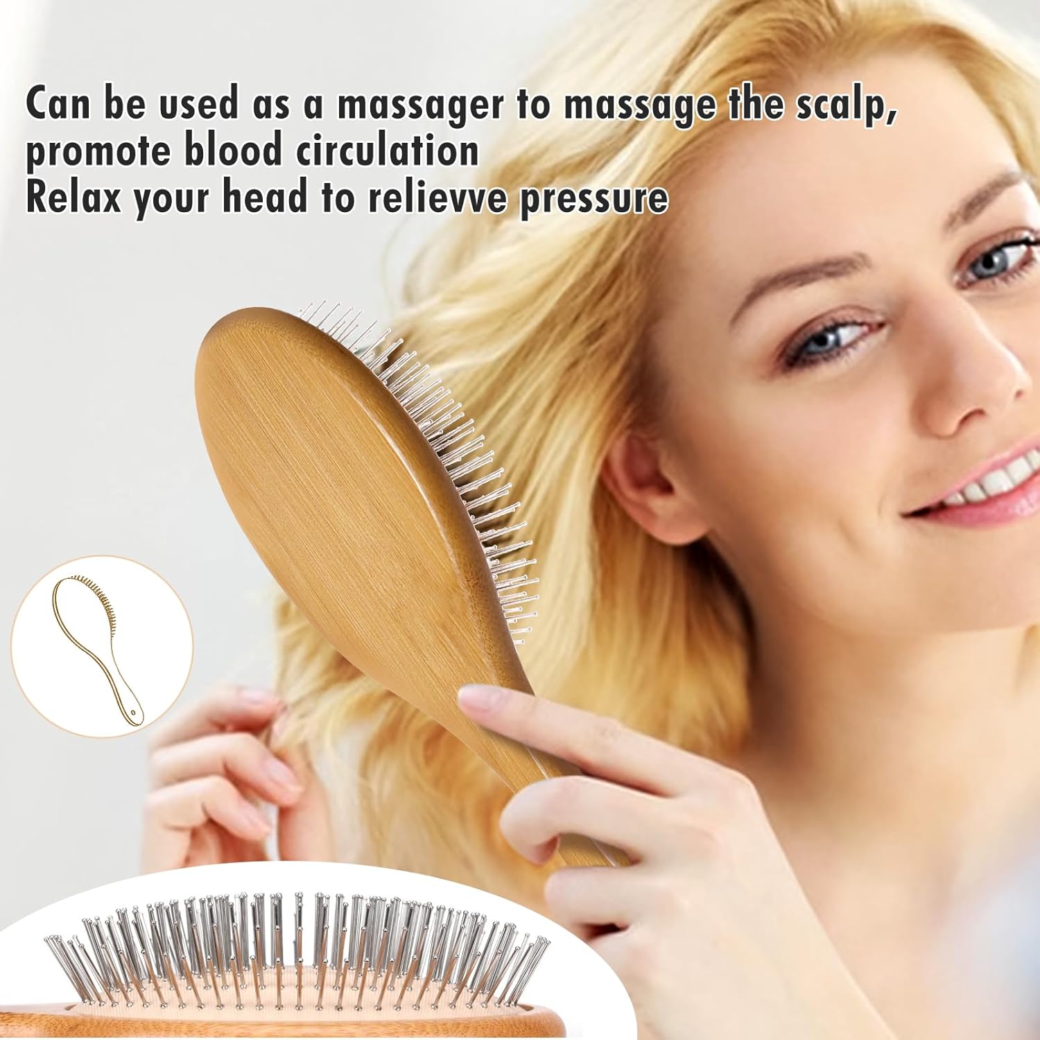 فرشاة فك تشابك الشعر، فرشاة رطبة وجافة للشعر الكثيف والمجعد مع مجداف هواء وشعيرات من الستانلس ستيل، مشط فرشاة لتدليك الراس / تحفيز فروة الراس / نمو الشعر / العناية اليومية بالشعر (بيضاوي)