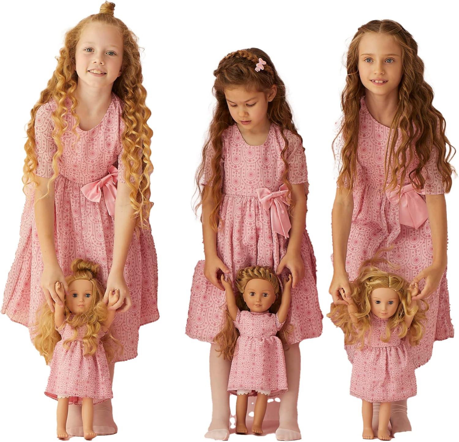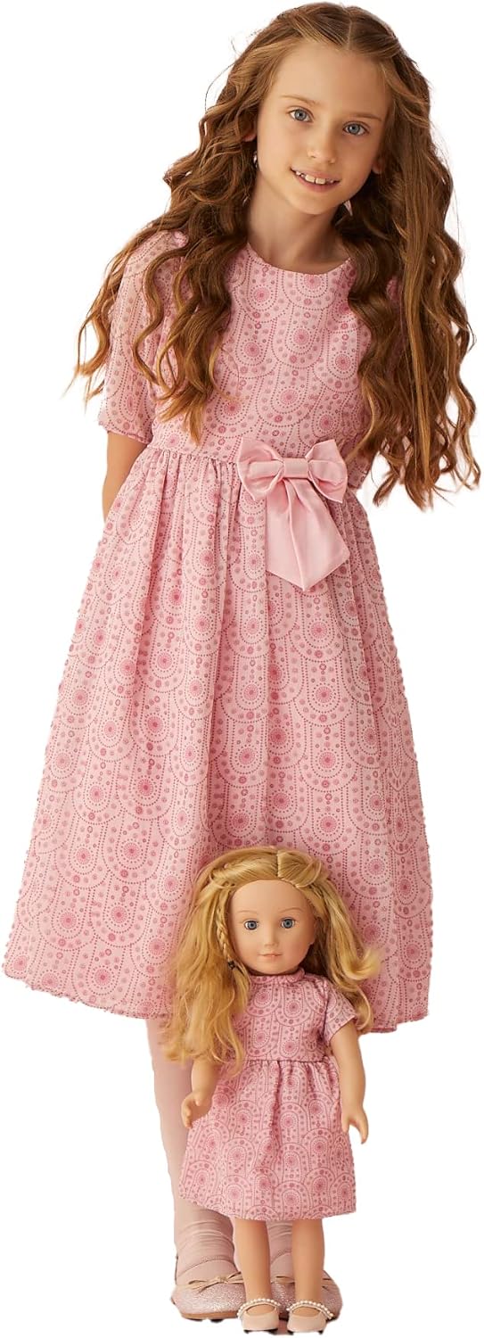 يتطابق هذا الفستان، أحدهما للفتيات والآخر للدمى مع الأحبة الصغيرة مع الدمى للحصول على جاذبية متناسقة.