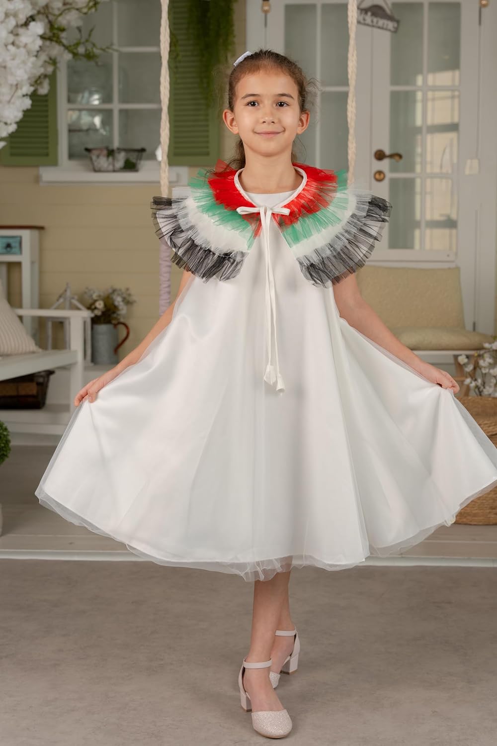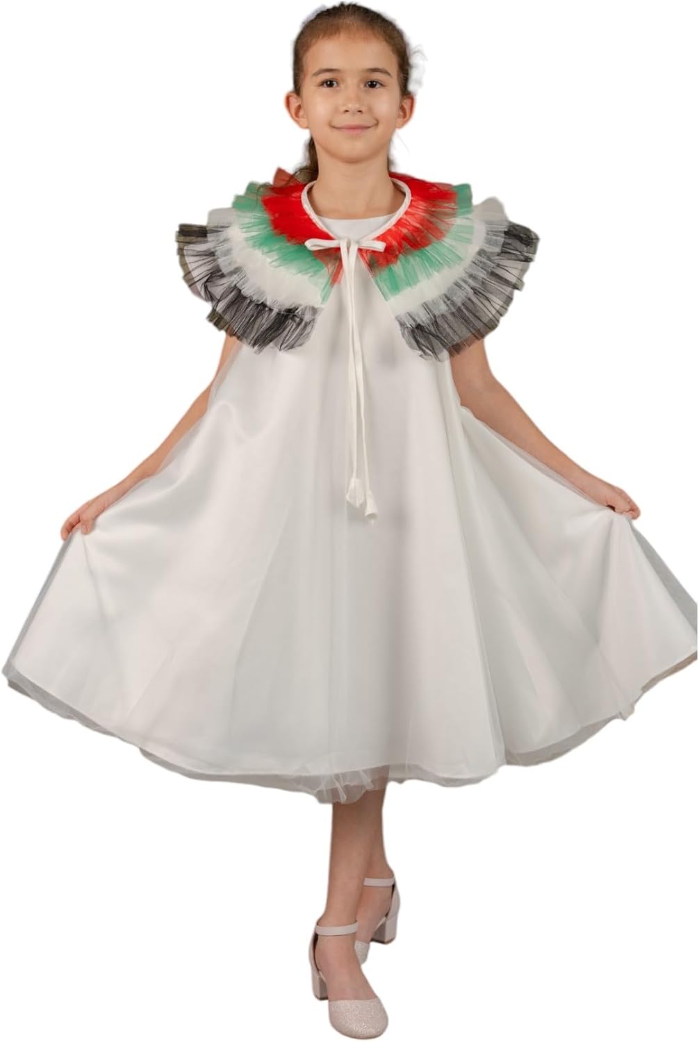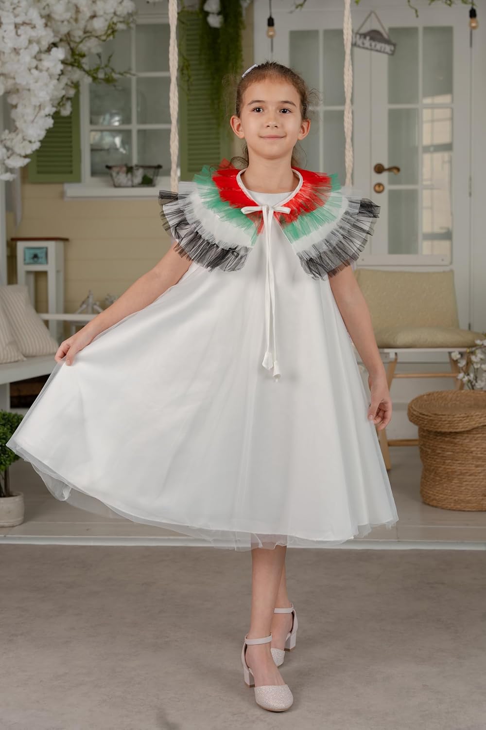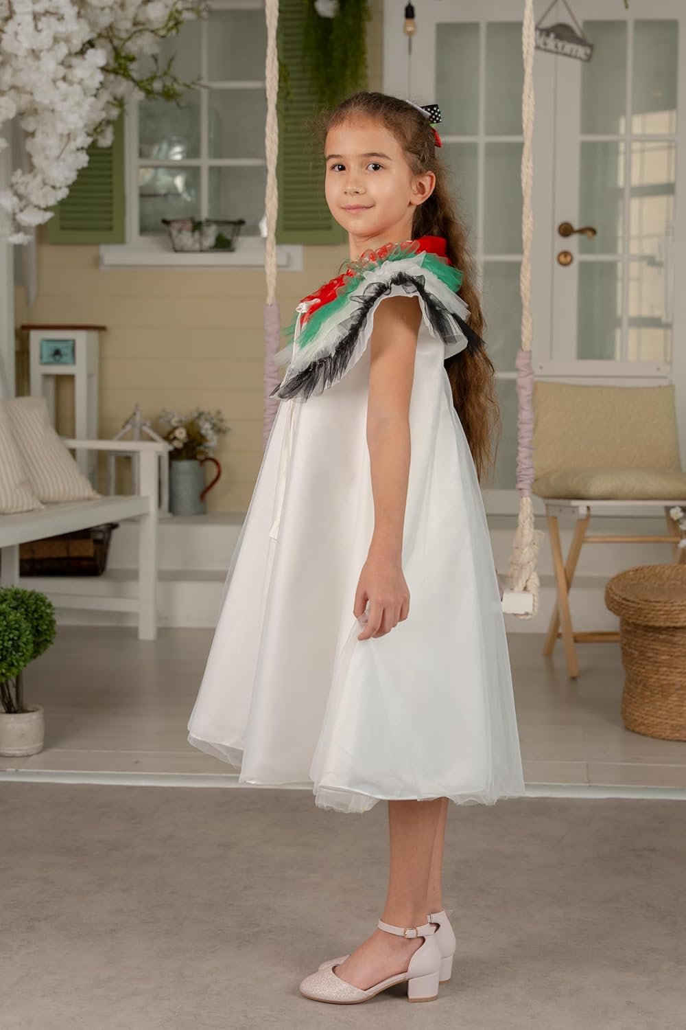 فستان بتصميم علم الامارات العربية المتحدة والعيد للبنات، فستان تول مع ريش ملون